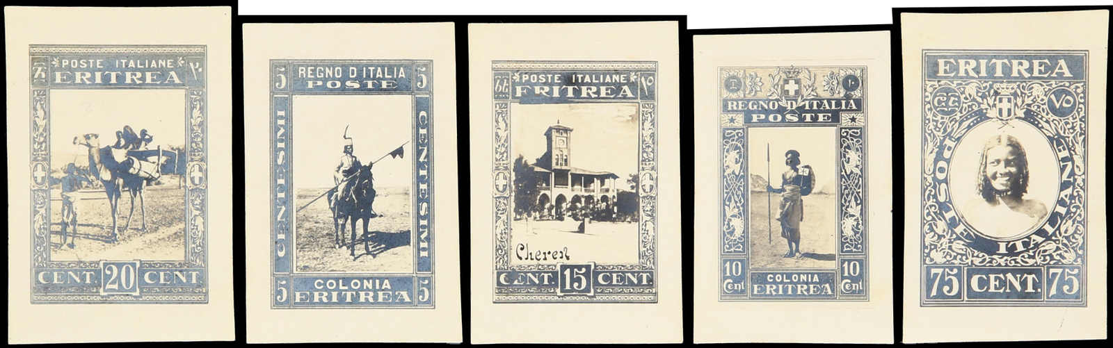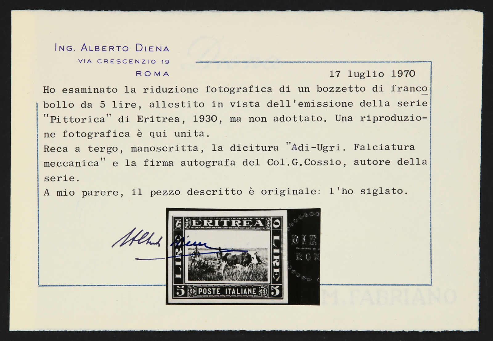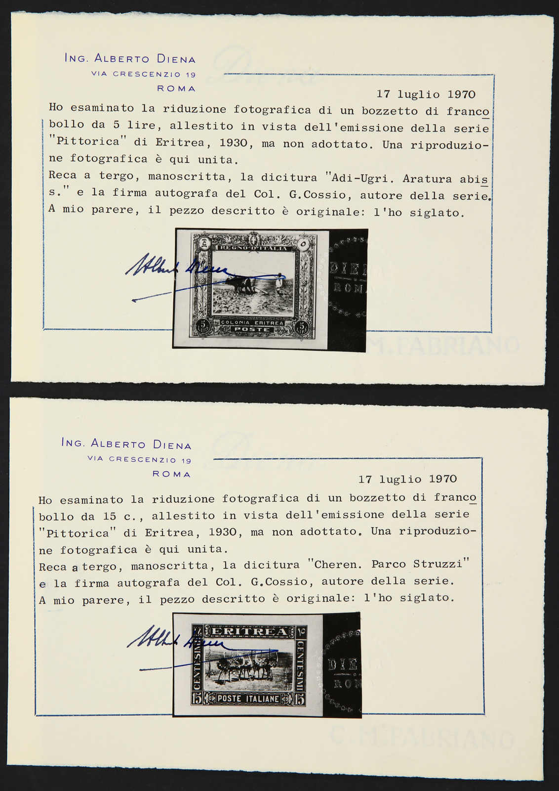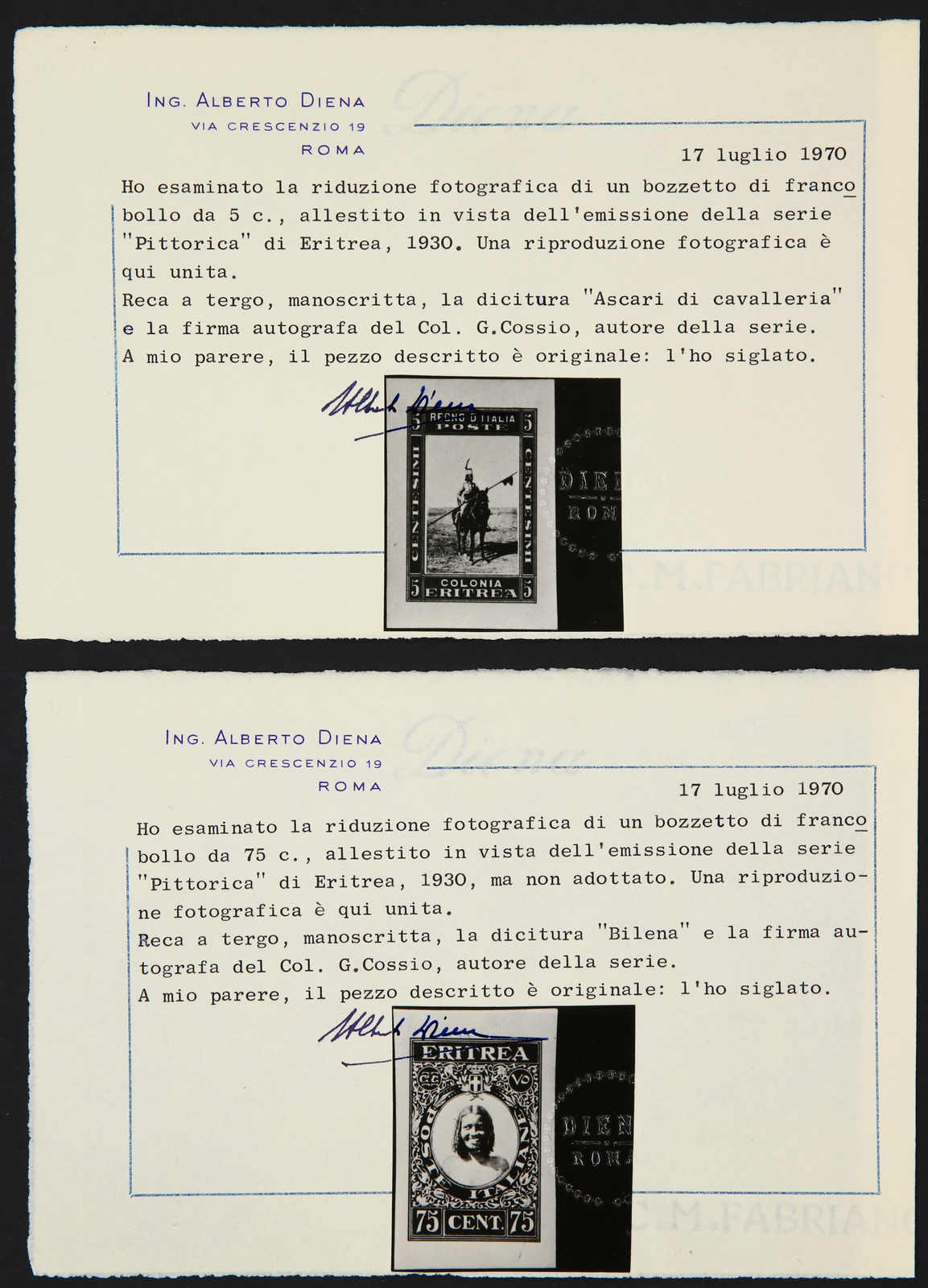 1930, five photo essays for 5 cent., 10 cent., 15 cent., 20 cent. and 75 cent., each with Alberto Diena certificate (Image) (imagea)