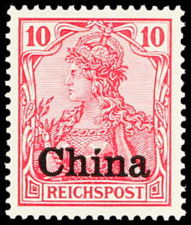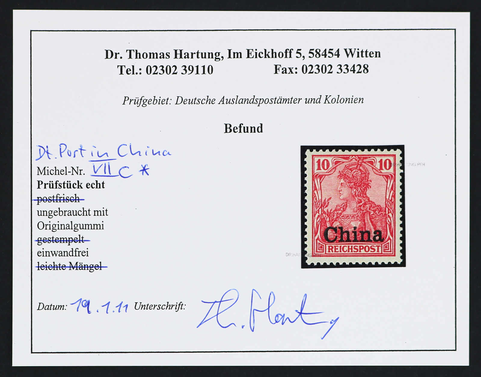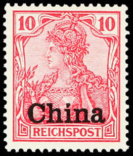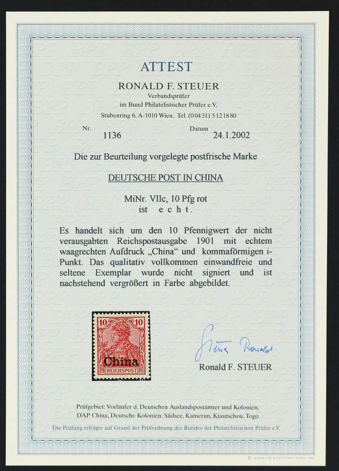1901, 10 Pfg. rot, nicht ausgegebener Wert mit Aufdruck mit kommaförmigem i-Punkt, ungebraucht, einwandfrei, Kurzexpertise Dr. Hartung (Image) (imagea)