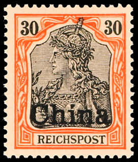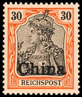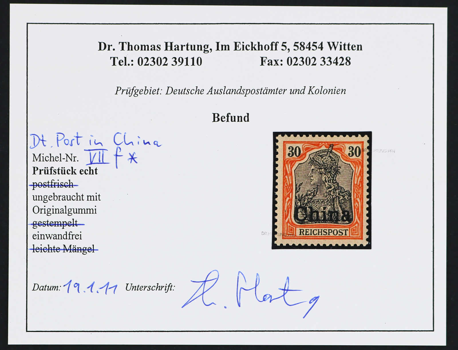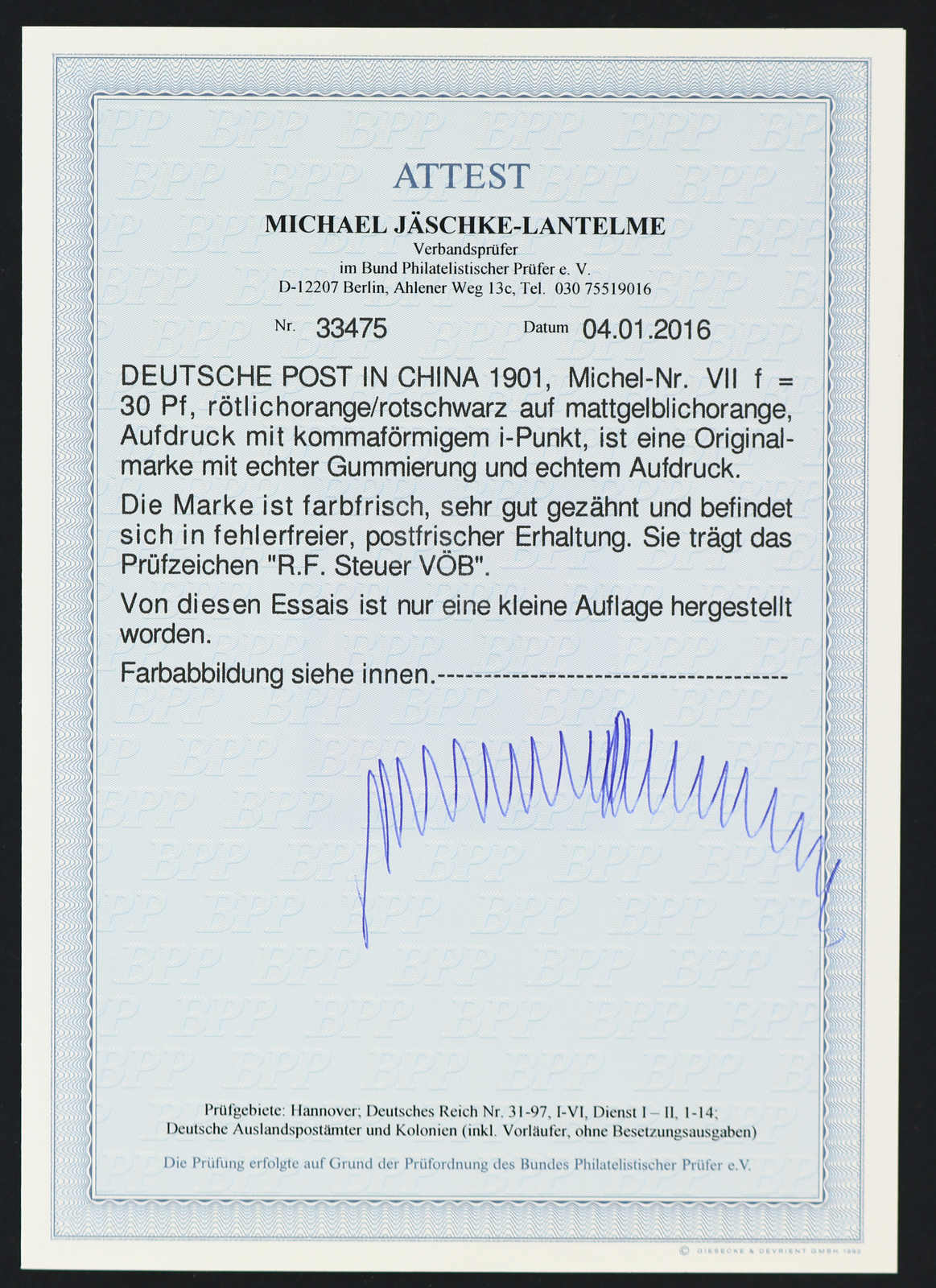1901, 30 Pfg. rötlichorange/rotschwarz auf mattgelblichorange, nicht ausgegebener Wert mit Aufdruck mit kommaförmigem i-Punkt, ungebraucht, einwandfrei, sign. Bothe BPP, Kurzexpertise Dr. Hartung (Image) (imagea)
