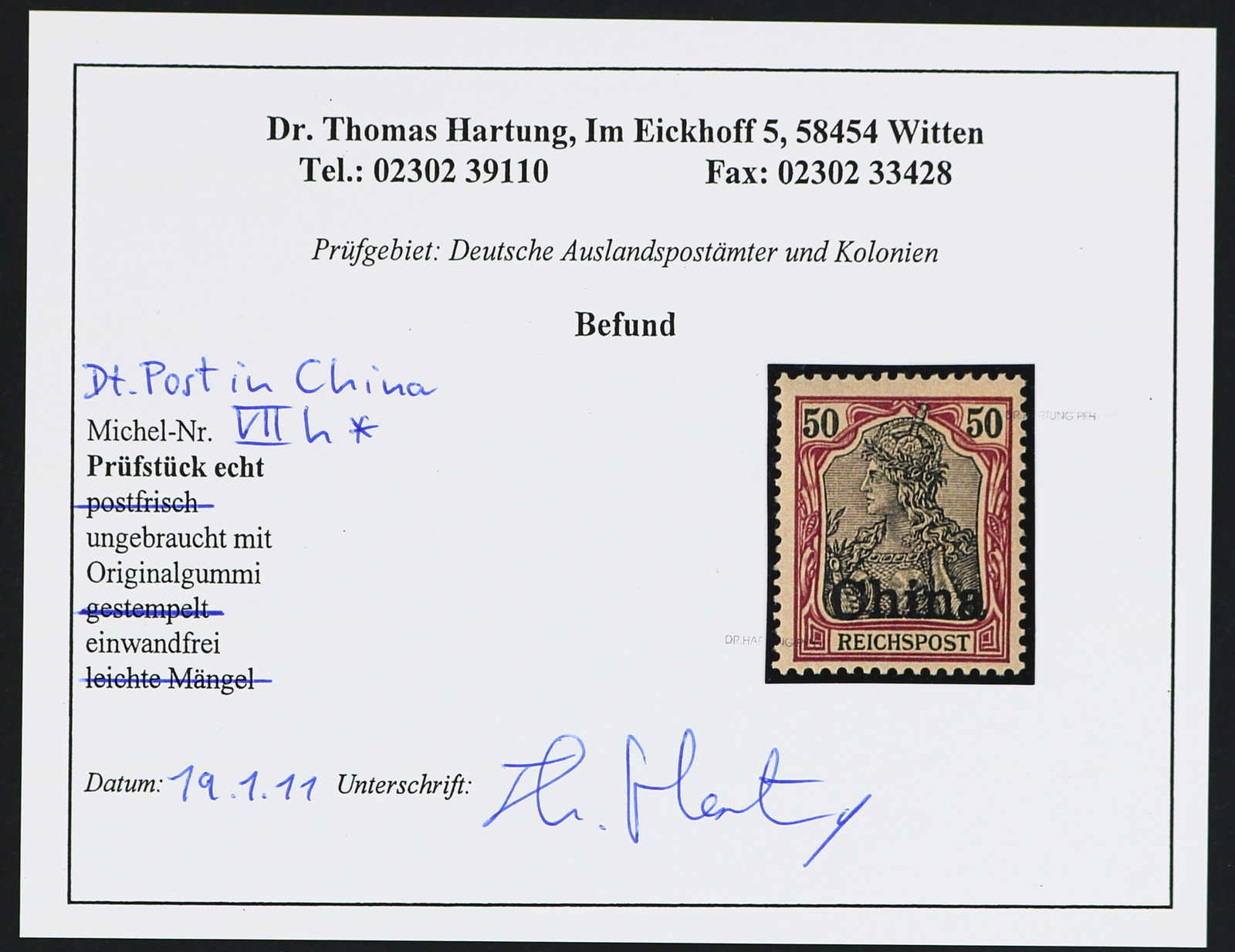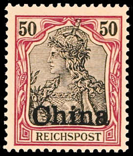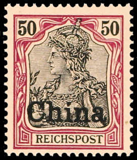 1901, 50 Pfg. dunkelbräunlichlila/rotschwarz auf mattbraunorange, nicht ausgegebener Wert mit Aufdruck mit kommaförmigem i-Punkt, ungebraucht, einwandfrei, sign. Bothe BPP, Kurzexpertise Dr. Hartung (Image) (imagea)