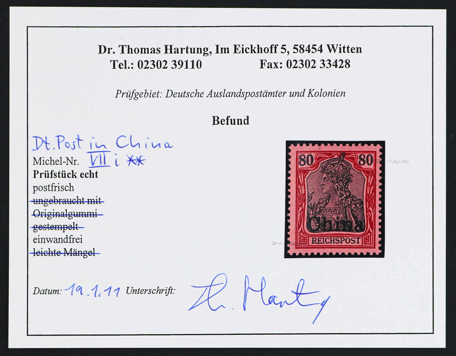 1901, 80 Pfg. dunkelrötlichkarmin/rotschwarz auf mattkarmin, nicht ausgegebener Wert mit Aufdruck mit kommaförmigem i-Punkt, POSTFRISCH, einwandfrei, sign. Bothe BPP, Kurzexpertise Dr. Hartung (Image) (imagea)