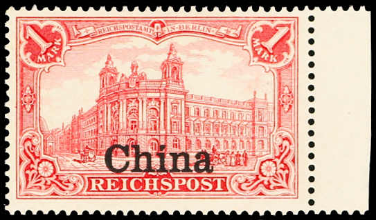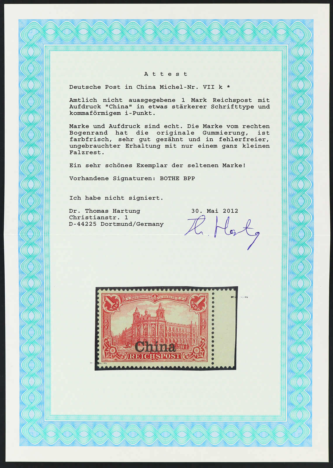 1901, 1 M. (dunkel)rot, nicht ausgegebener Wert mit Aufdruck mit kommaförmigem i-Punkt vom rechten Bogenrand, ungebraucht, einwandfrei, signiert Bothe BPP, Fotoexpertise Dr. Hartung (Image) (imagea)