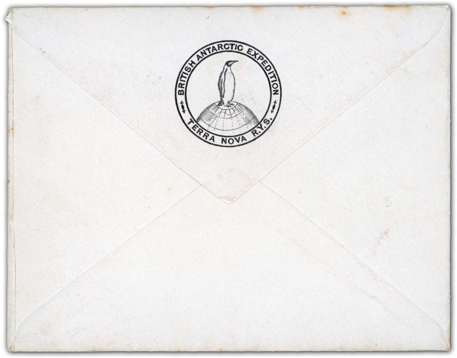 1913, ½ P. im waagerechten Paar und 1 P. von Neuseeland mit Aufdruck VICTORIALAND. auf offiziellem Umschlag des Expeditionsschiffes "Terra Nova" der BRITISCHEN ANTARKTIS-EXPEDITION (Scott), gestempelt "BRIT ANTARCTIC EXPPD. 9 FE 11" (die