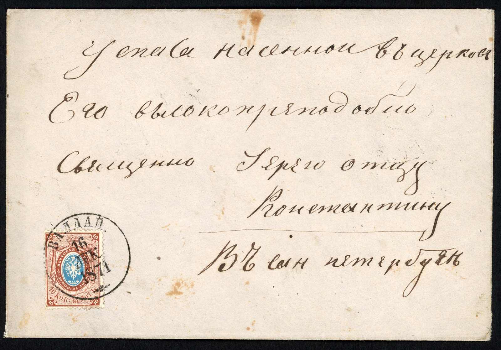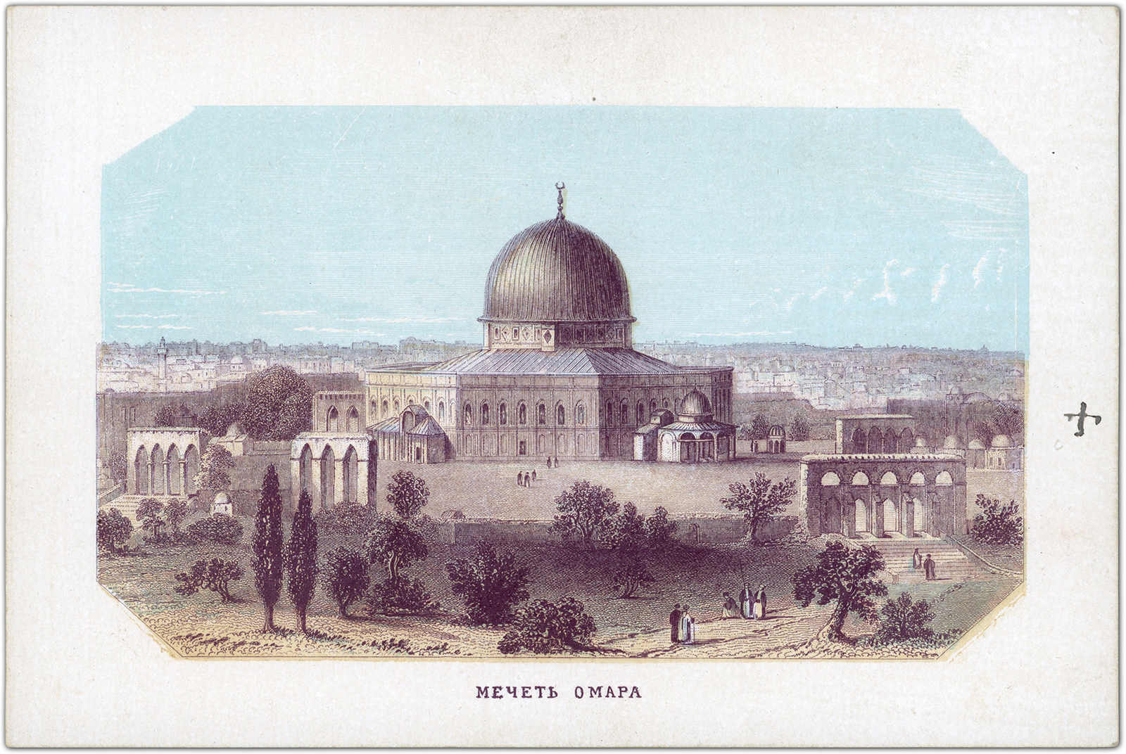 1871, Litho-Ansichtskarte der Omar-Moschee in Jerusalem, russisch beschriftet und im Umschlag versandt mit russischer 10 Kop.-Marke ab "WALDAI 16 DEK 1871", Umschlag etwas fleckig (Image) (imagea)