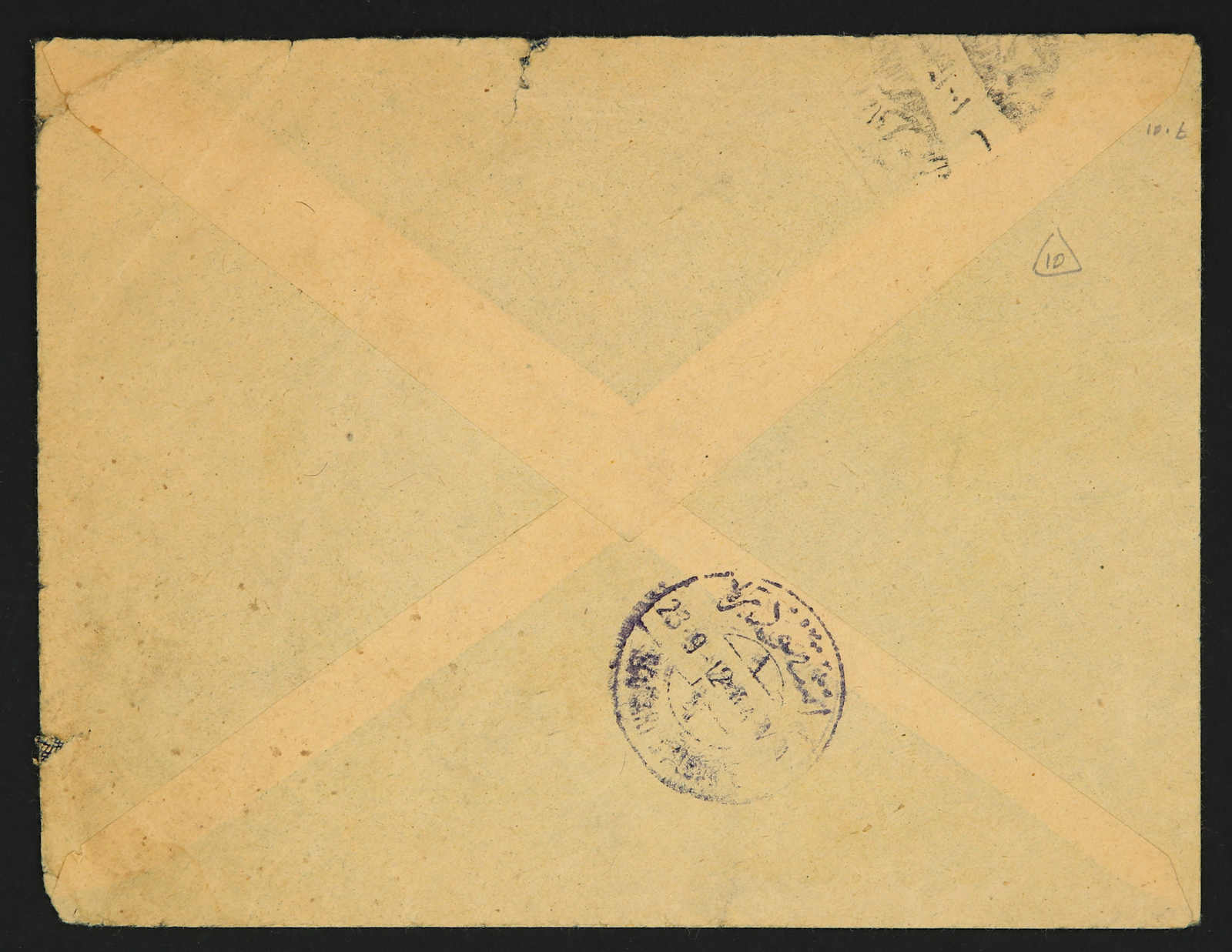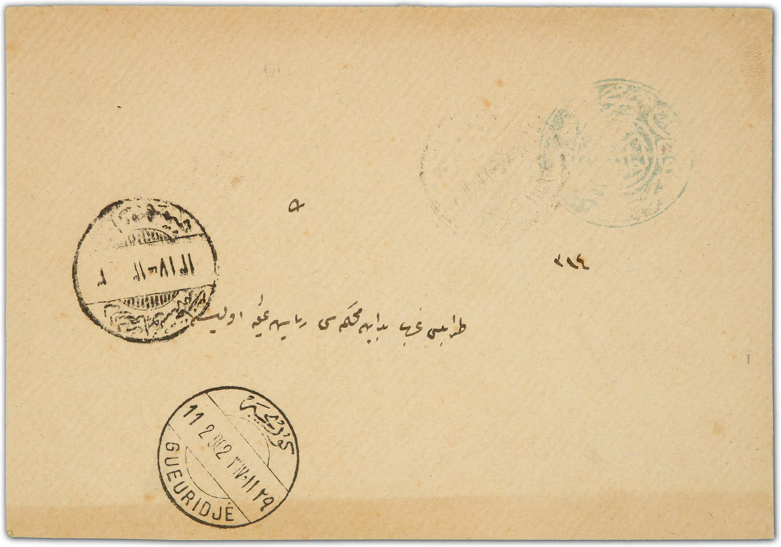 Korçë-Coritza: 1902, official cover sent from Korçe court to Tripolı de Barbarie court showing extremely fine bilingual "GUEURIDJÉ" circular date stamp (11/2), Coles & Walker fig. 50, alongside all Arabic Constantinople transit cds, on