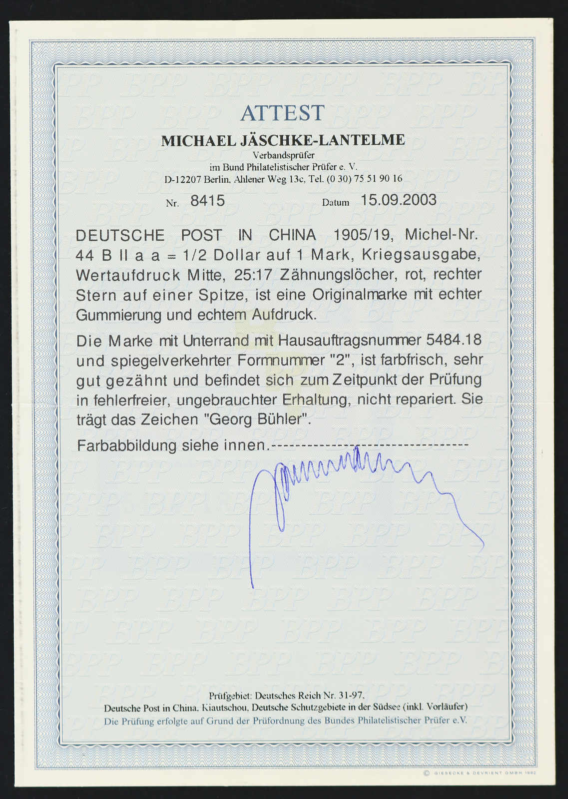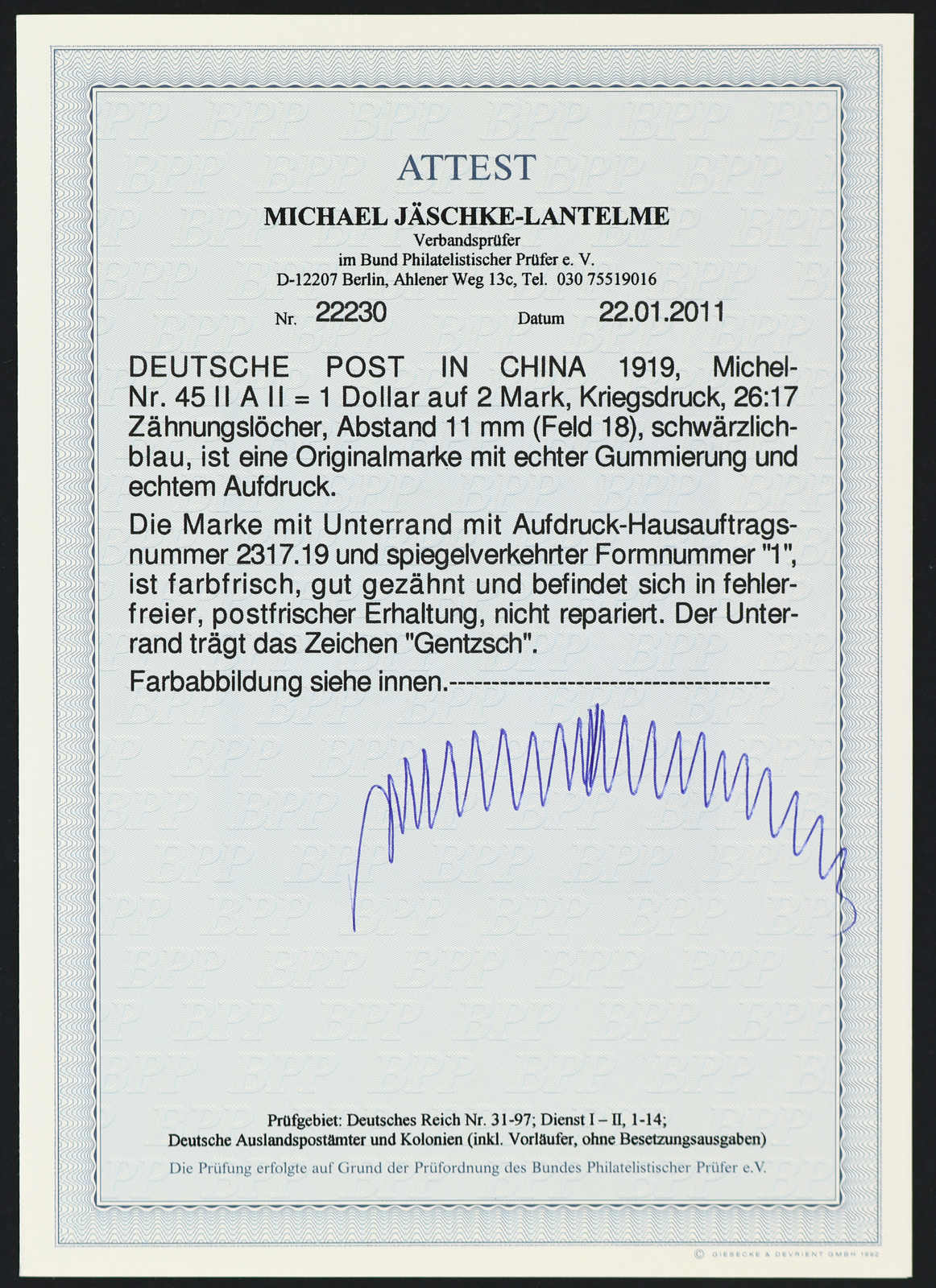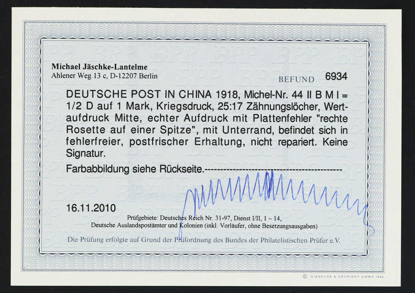 Gentzsch, Fotoattest Jäschke-Lantelme BPP (ME -,-) (Image)
