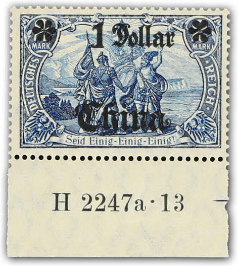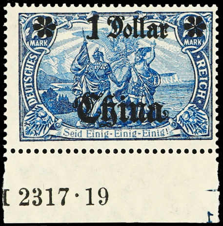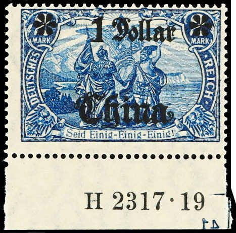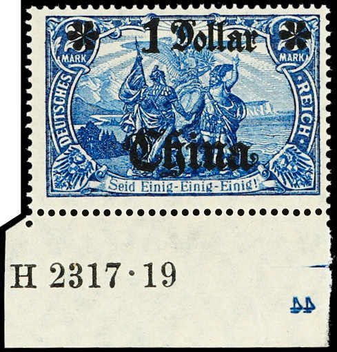 1919, 1 D. auf 2 M. schwärzlichblau, postfrischer Einzelwert vom Unterrand mit HAN 2317.19 und spiegelverkehrter Formnummer 41, farbfrisch und gut gezähnt, einwandfrei (ME 700,-) (Image)