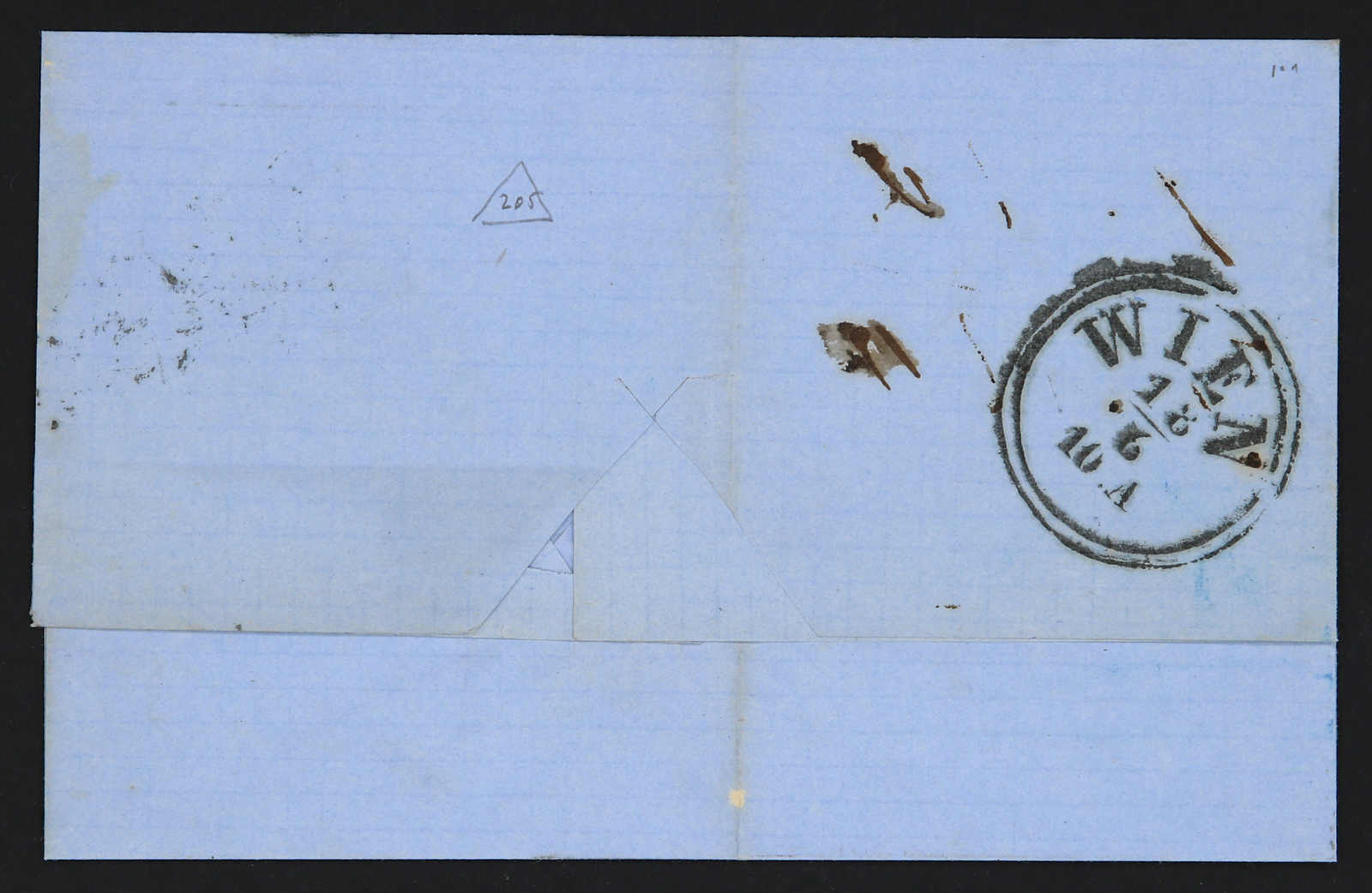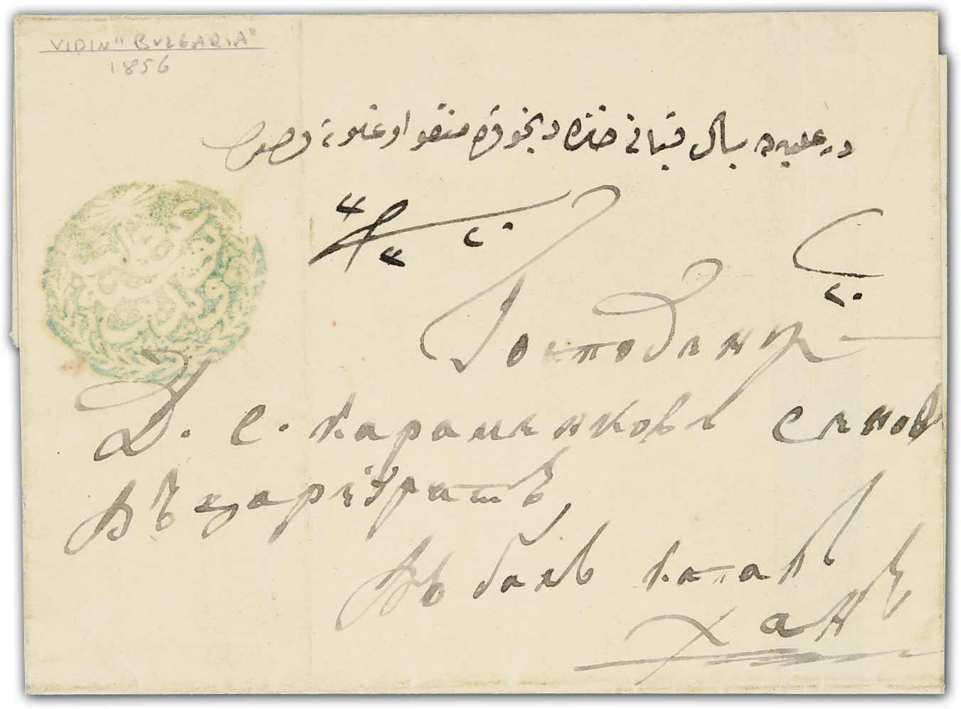 Vidin: 1856, folded letter from Vidin to Constantinople showing extremely fine strike of Arabic negative "An Canib-i Posta-i Vidin 259" (on behalf of Vidin Post Office 1843) handstamp in greenish ink (Coles & Walker fig. 86), weight 3
