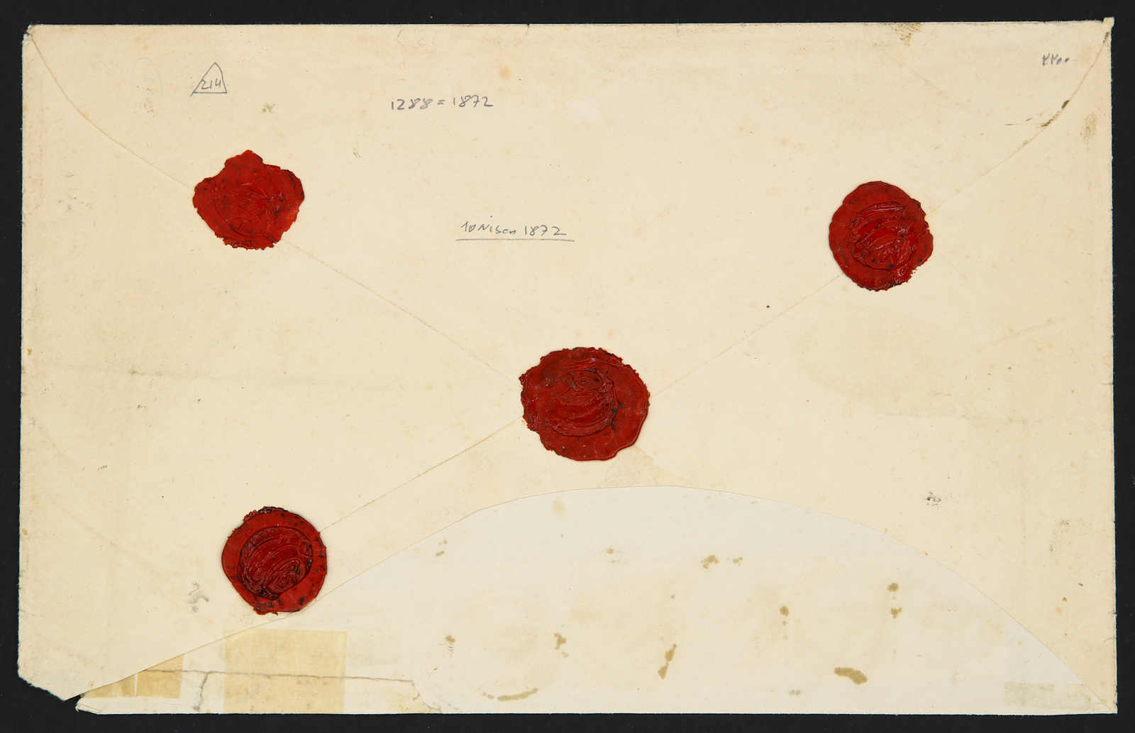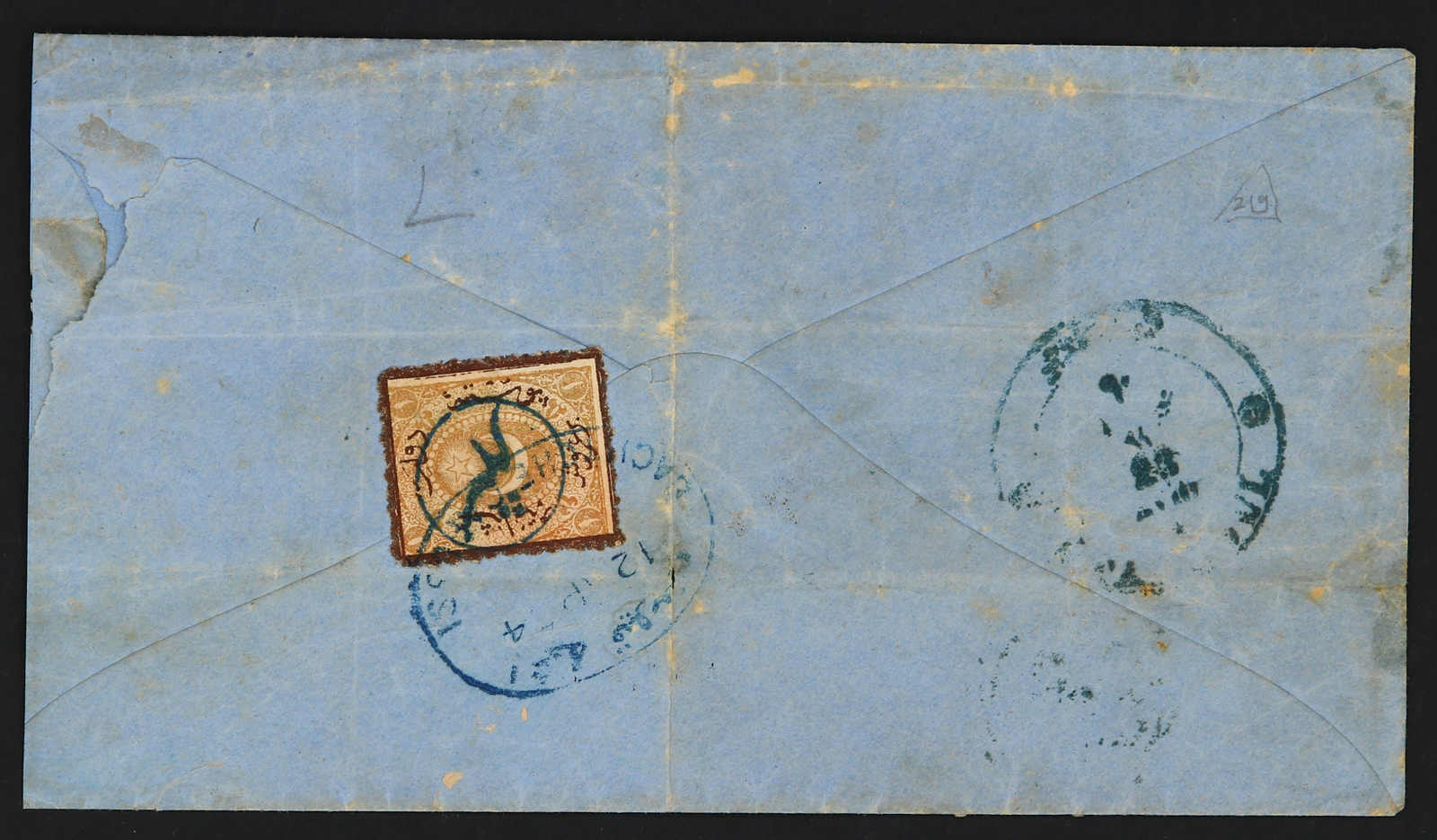 stamps, Coles & Walker fig. 88, alongside all Arabic negative "Taaahhüt olunmuştur" (="Has been registered") seal, on reverse part of the flap missing with small repair, signed Nakri (Image) (imagea)