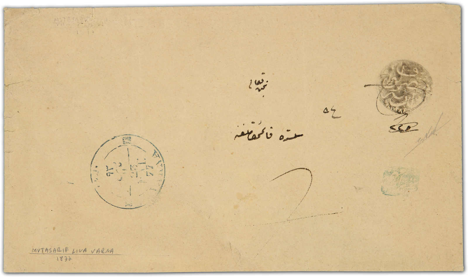 Varna: 1877, official cover from Varna to Silistre showing unrecorded by any catalogue all Arabic negative "Mutasarrıf Liva Varna" black seal, alongside small box negative "Tahrirat-i Mühimme" (="Official Correspondence") seal with first