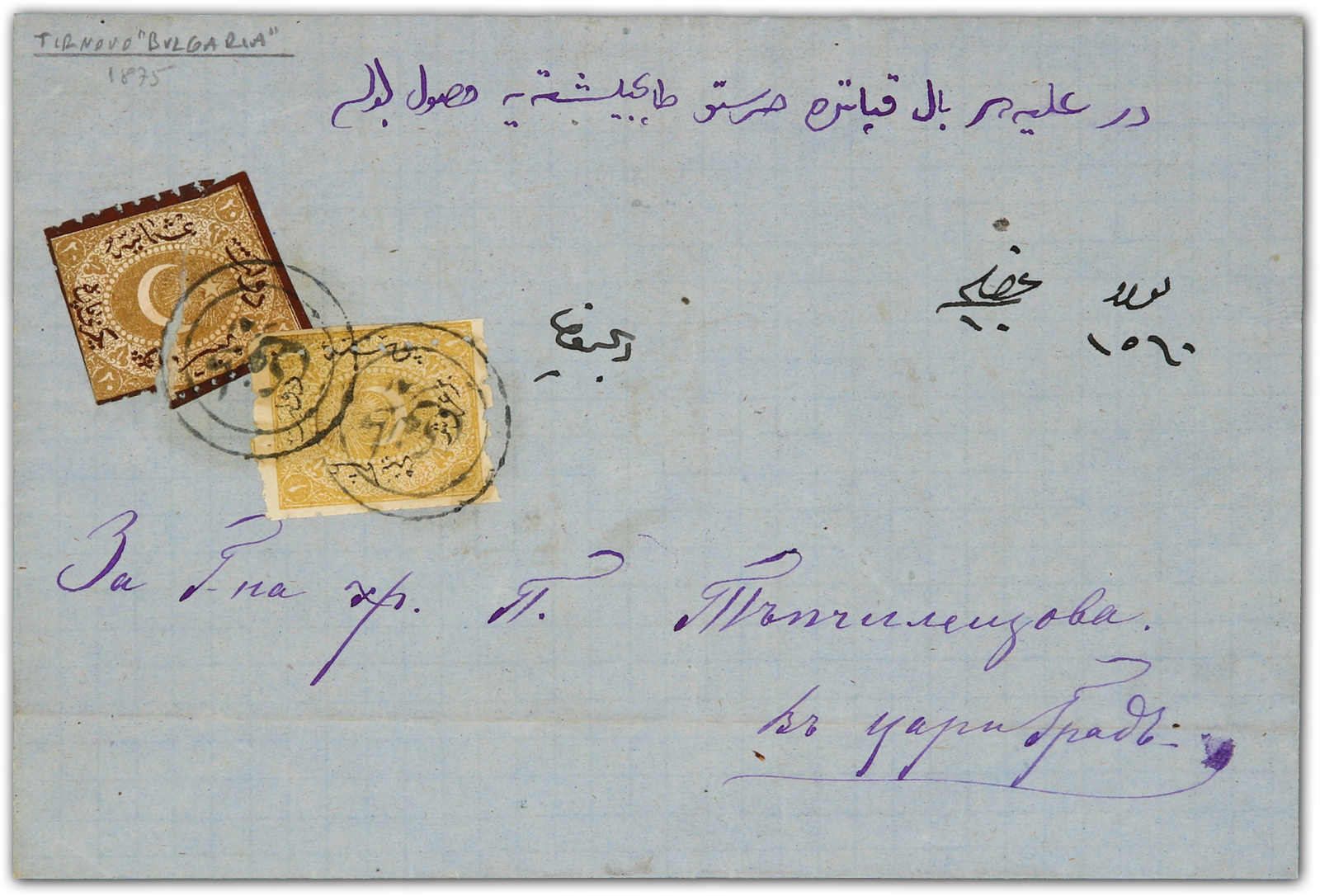 The distance from Istanbul to Tirnovo during First issue period was 91 route hours and regular mail up-to 3 dirhem of weight, 50-100 route hours distance was 3 piastre for this reason entire properly franked by total 3 piastres adhesives (Image) (imagea)