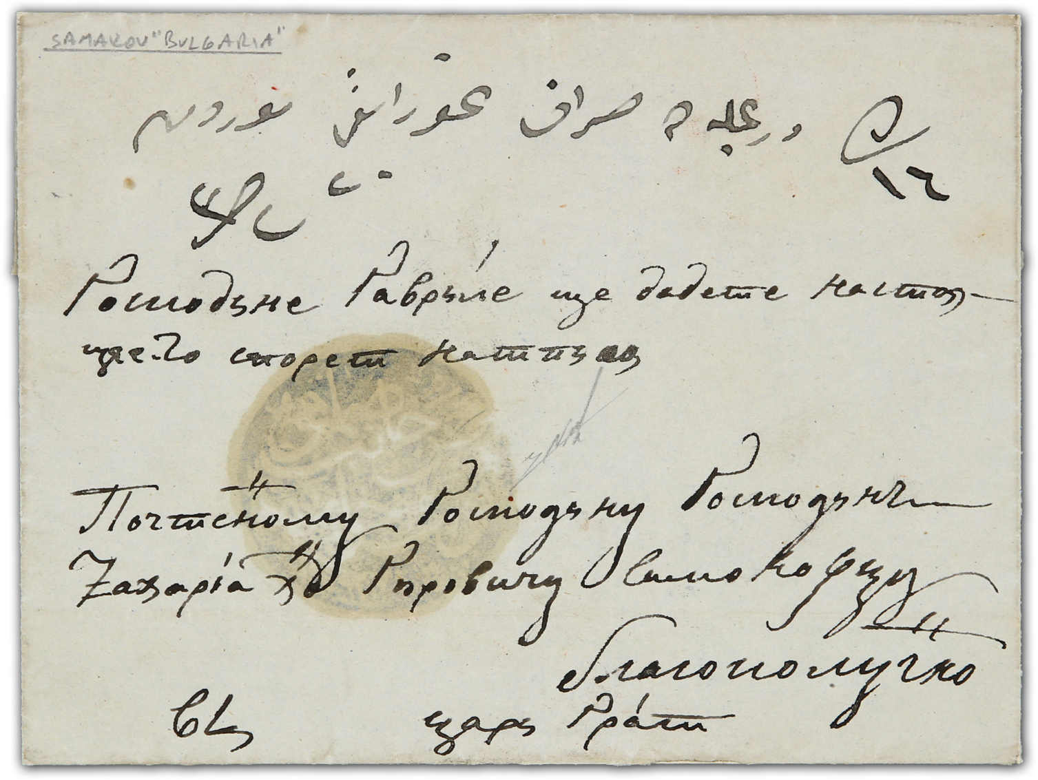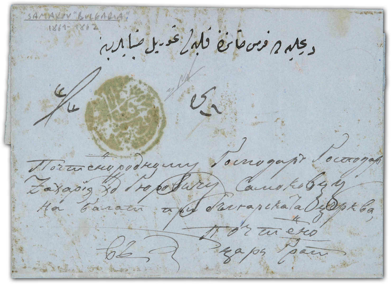 Samokov - Samakov: 1861/62, entire letter from Samakov to Constantinople showing extremely rare Arabic negative with Crescent "Postahane-i Samakov 1278" (Post Office Samakov 1861) handstamp in black (İsfila AP02), alongside manuscript