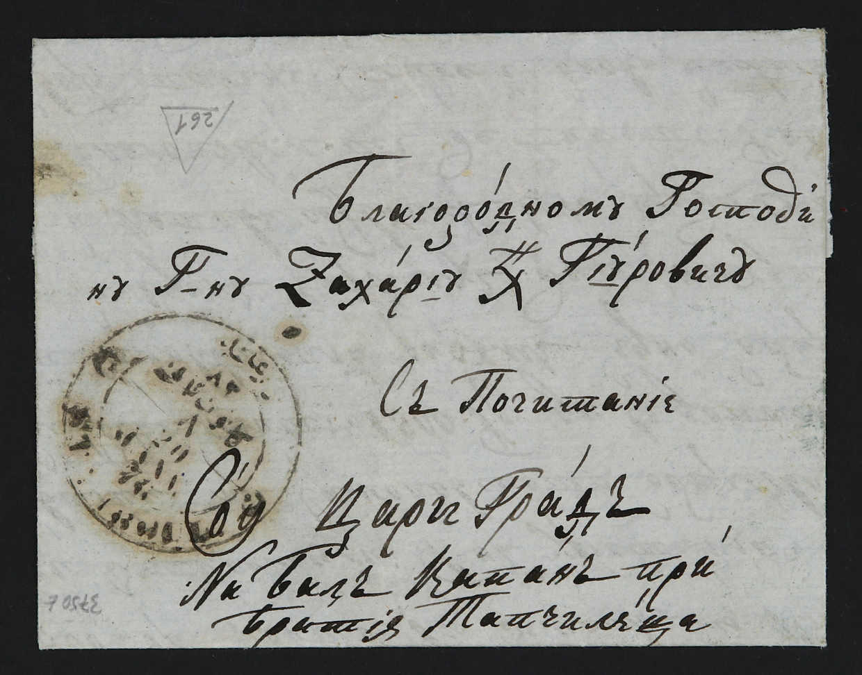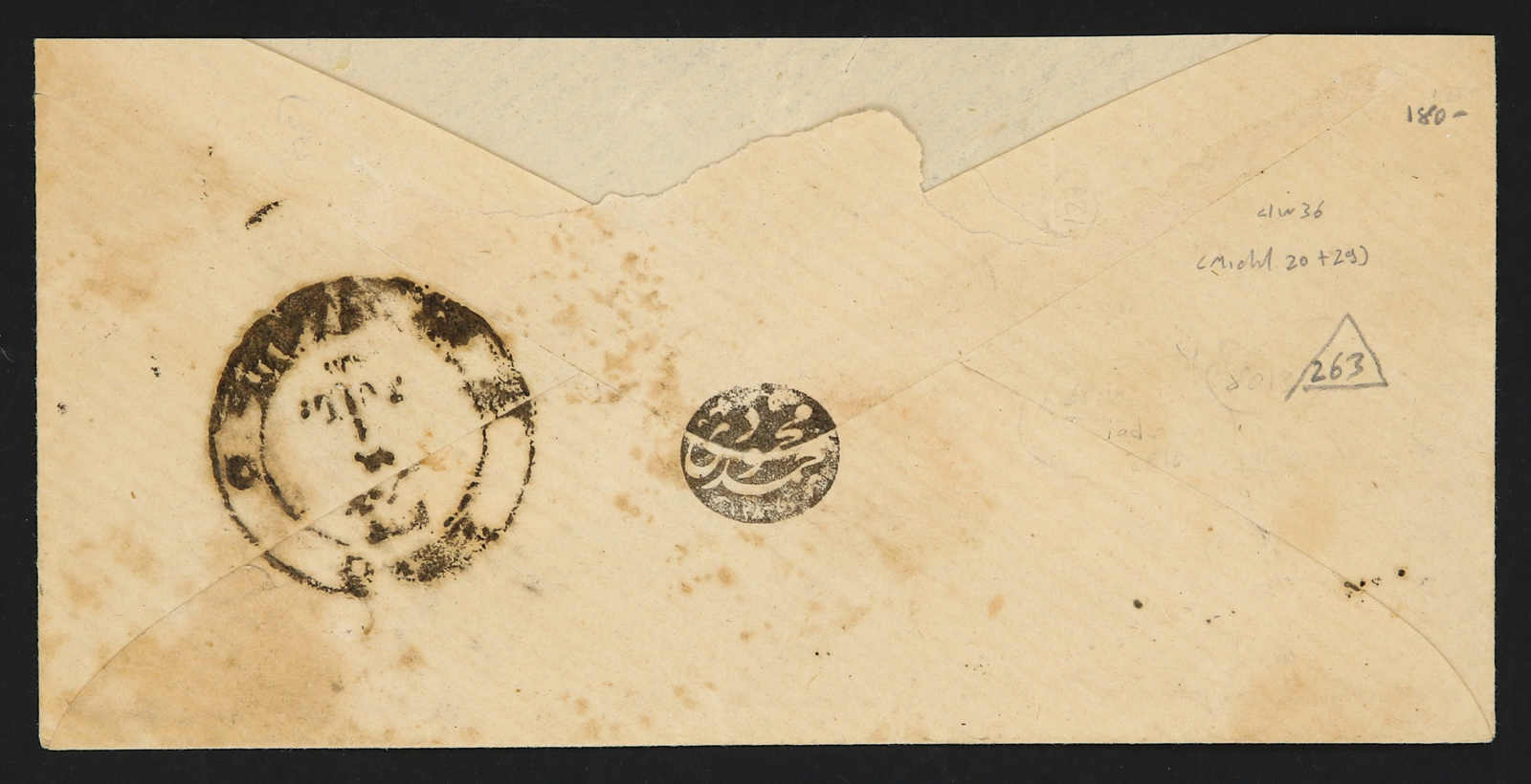 Veliko Tarnovo-Tirnova: 1846/63 approx., official cover from Veliko Tarnovo to Constantinople with fine strike of all Arabic negative "An Canib-i Posta-i Tirnova 1262" handstamp in black (Coles & Walker fig. 77), alongside boxed negative