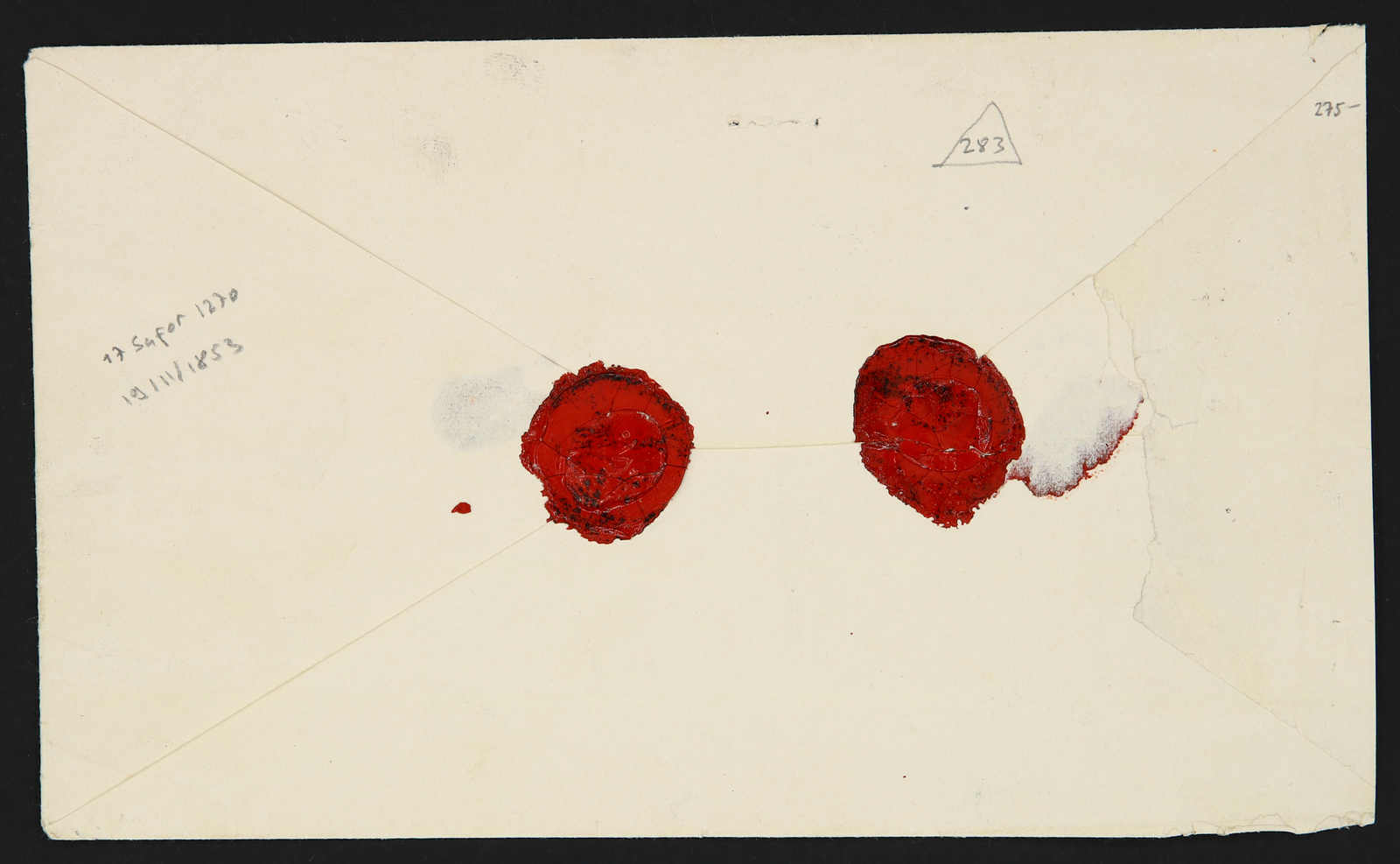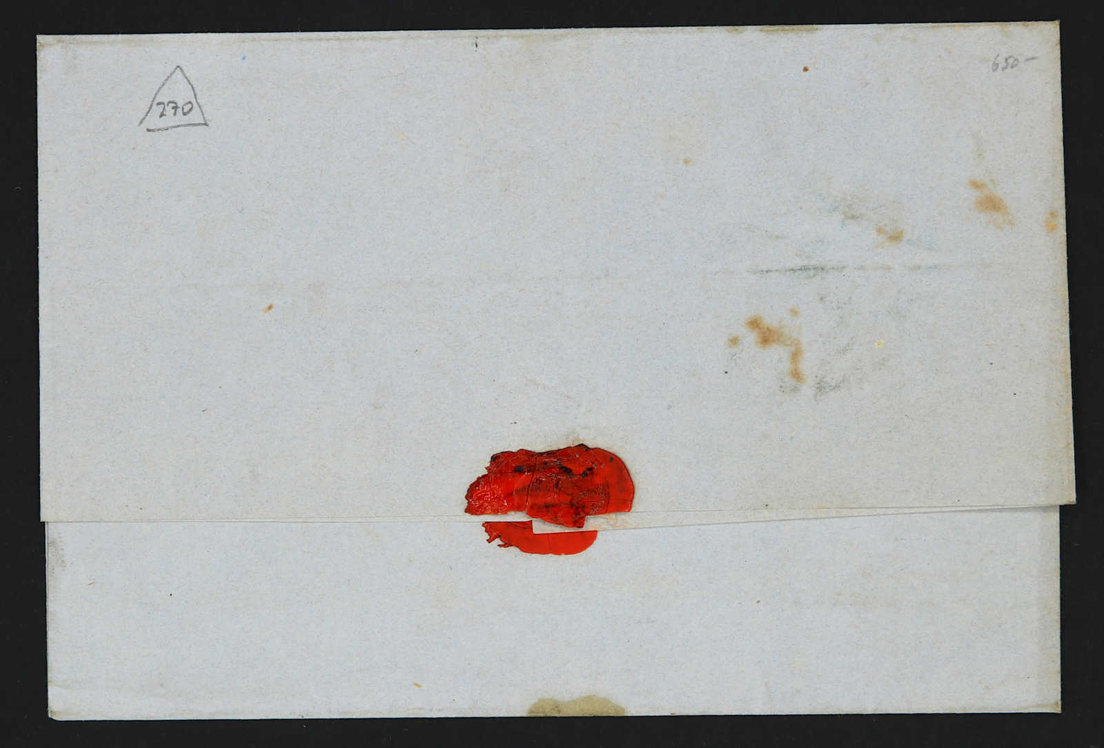Ruse-Rusçuk: 1853, cover dated 17 Safer 1270 = 19 November 1853 in manuscript, mailed from Ruse to Zagra showing very fine strike of all Arabic negative "An Canib-i Posta Rusçuk 265" handstamp (Coles & Walker fig. 58), weight 7 Dirhem /