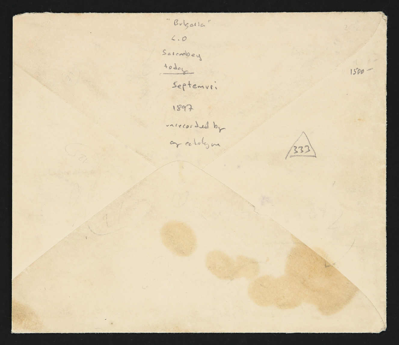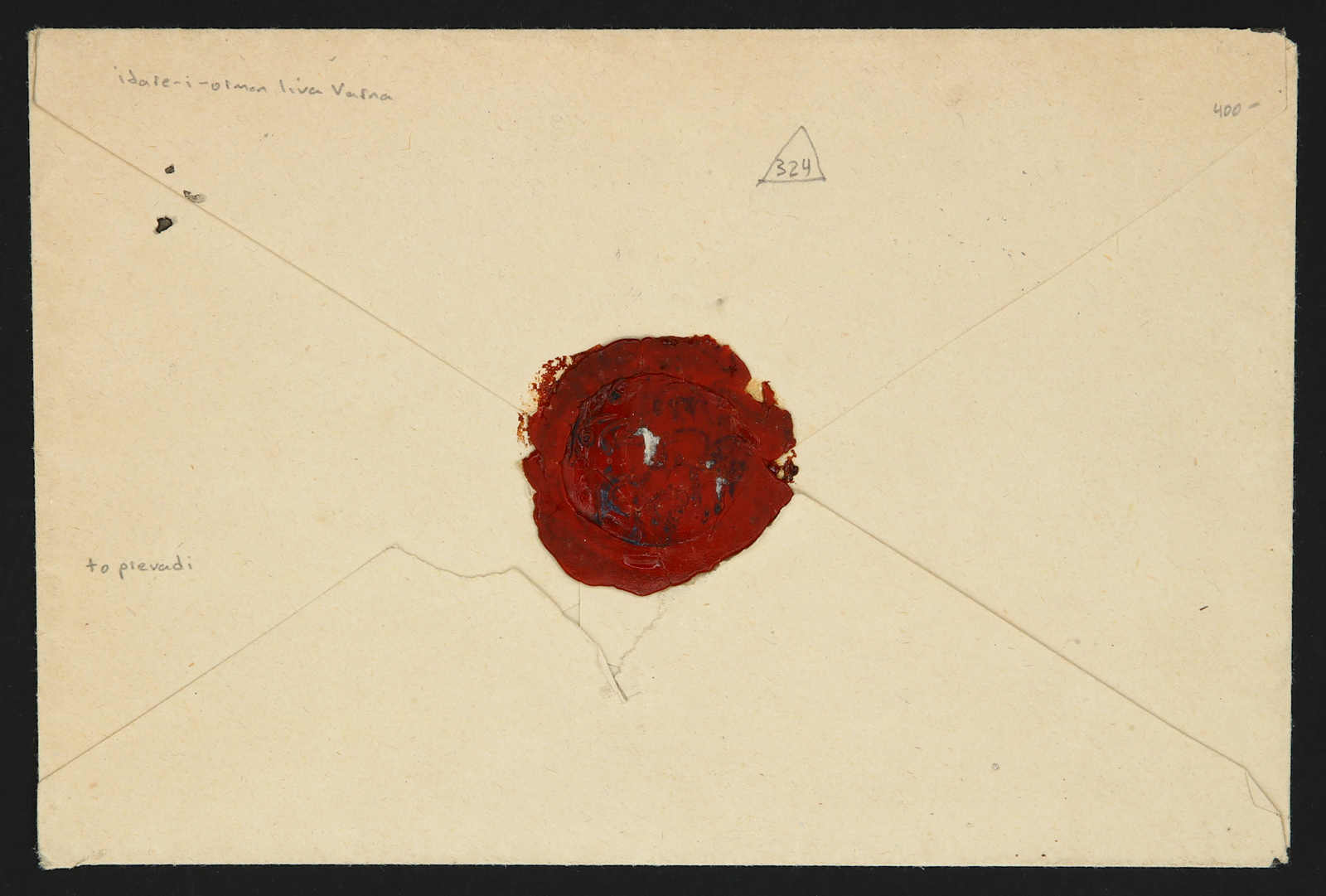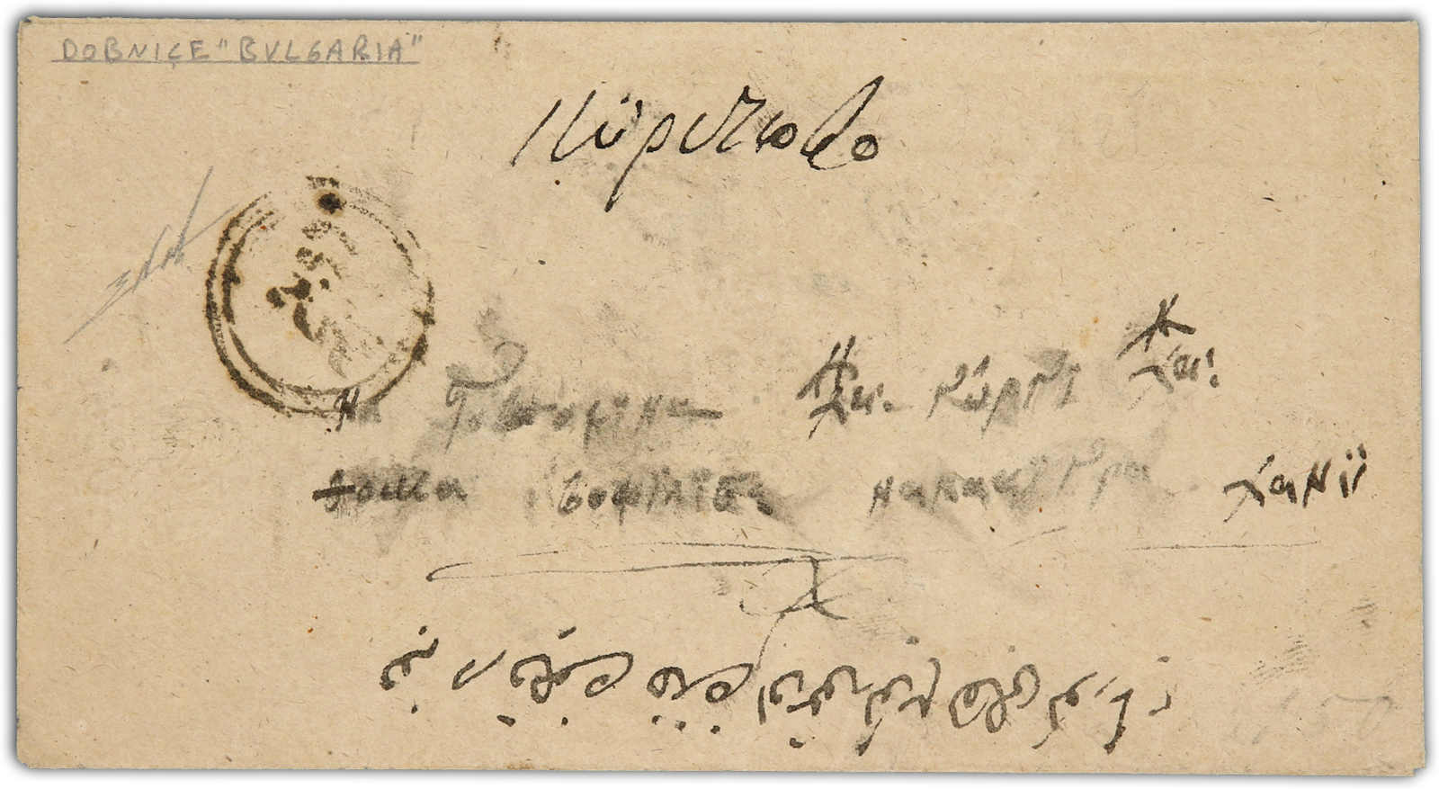 Varna: official cover from Varna to Prevadi showing Arabic negative "Varna Orman Liva idaresi" seal handstamp in black, with small boxed negative "Tahrirat-i Mühimme" (Official Correspondence) seal below, unrecorded by any catalogue,
