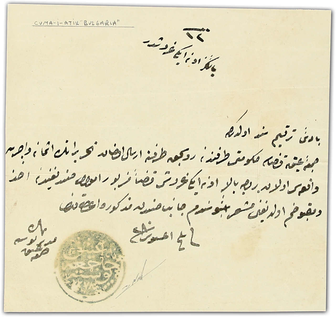 Targovishte - Eski-Cuma - Cuma-i Atik: 1861, entire (some water stains) from Targovishte to Varna showing extremely good strike of Arabic "An Canib-i Postahane -i Cuma-i Atik" handstamp in black, weight 3 Dirhem / postal charge 30 para in
