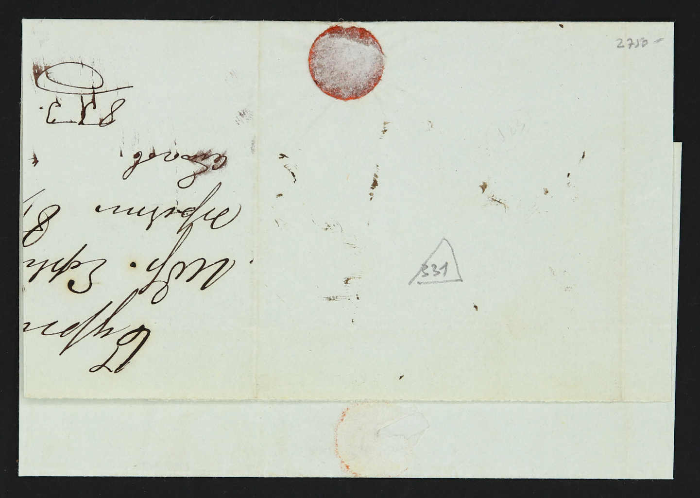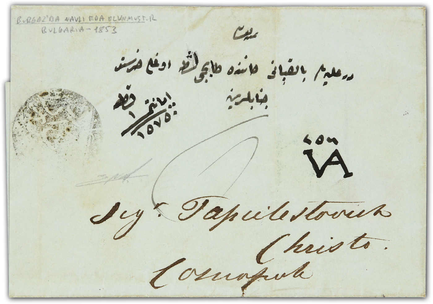 Burgas - Burgaz: 1853, entire from Burgas to Constantinople showing fair strike of the extremely rare Arabic negative "Burgaz'da Navlı eda olunmuştur 265" (Fee has been collected in Burgas 1848) seal handstamp in black, unrecorded by any