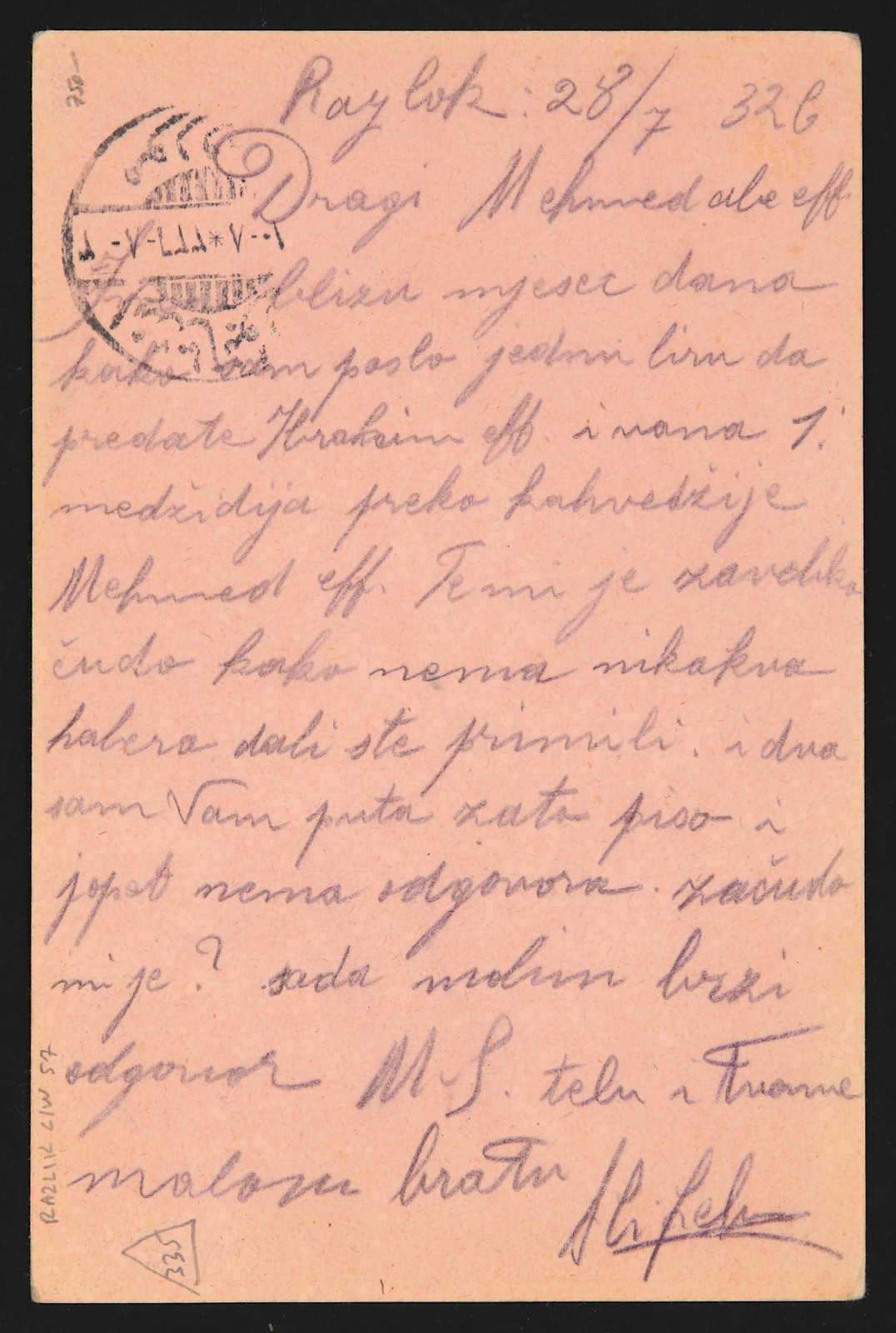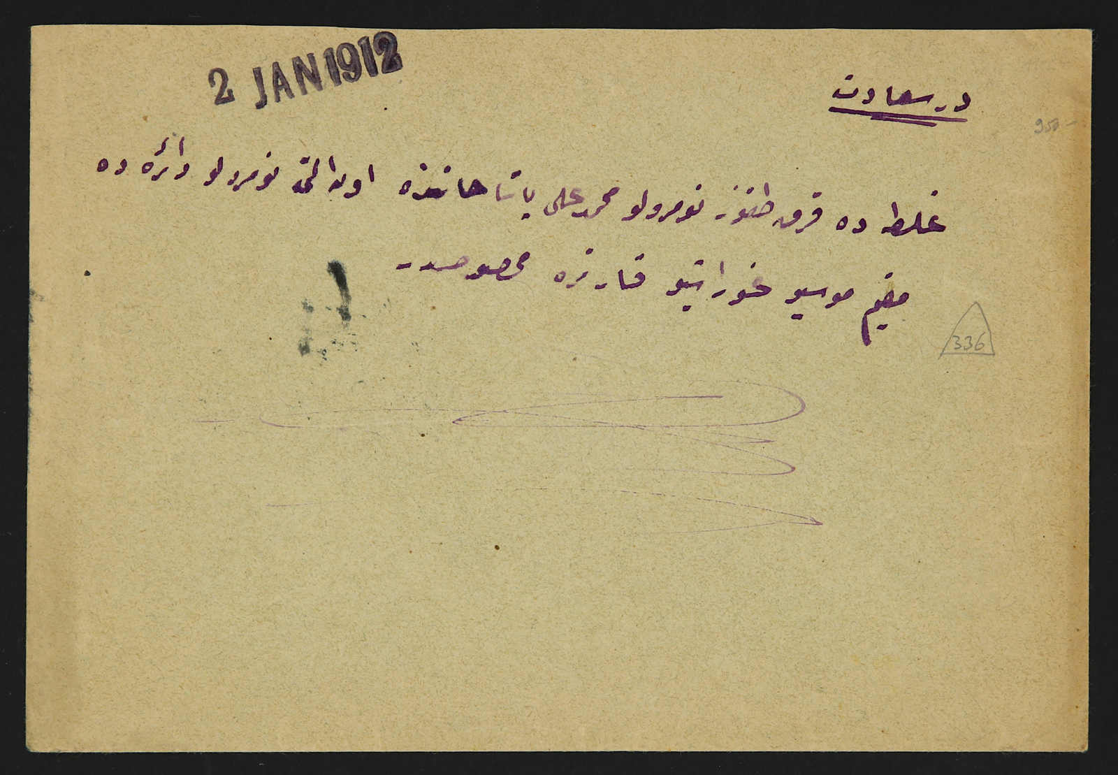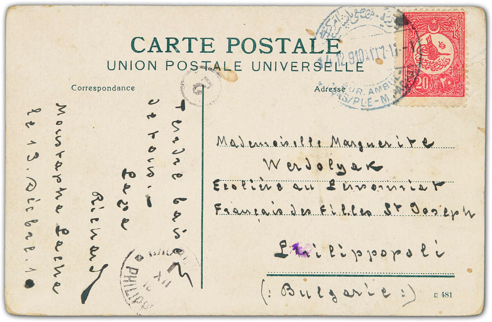 left top side weight 3 Dirhem / postal charge 2 piastre 20 paras at top (Image) (imagea)
