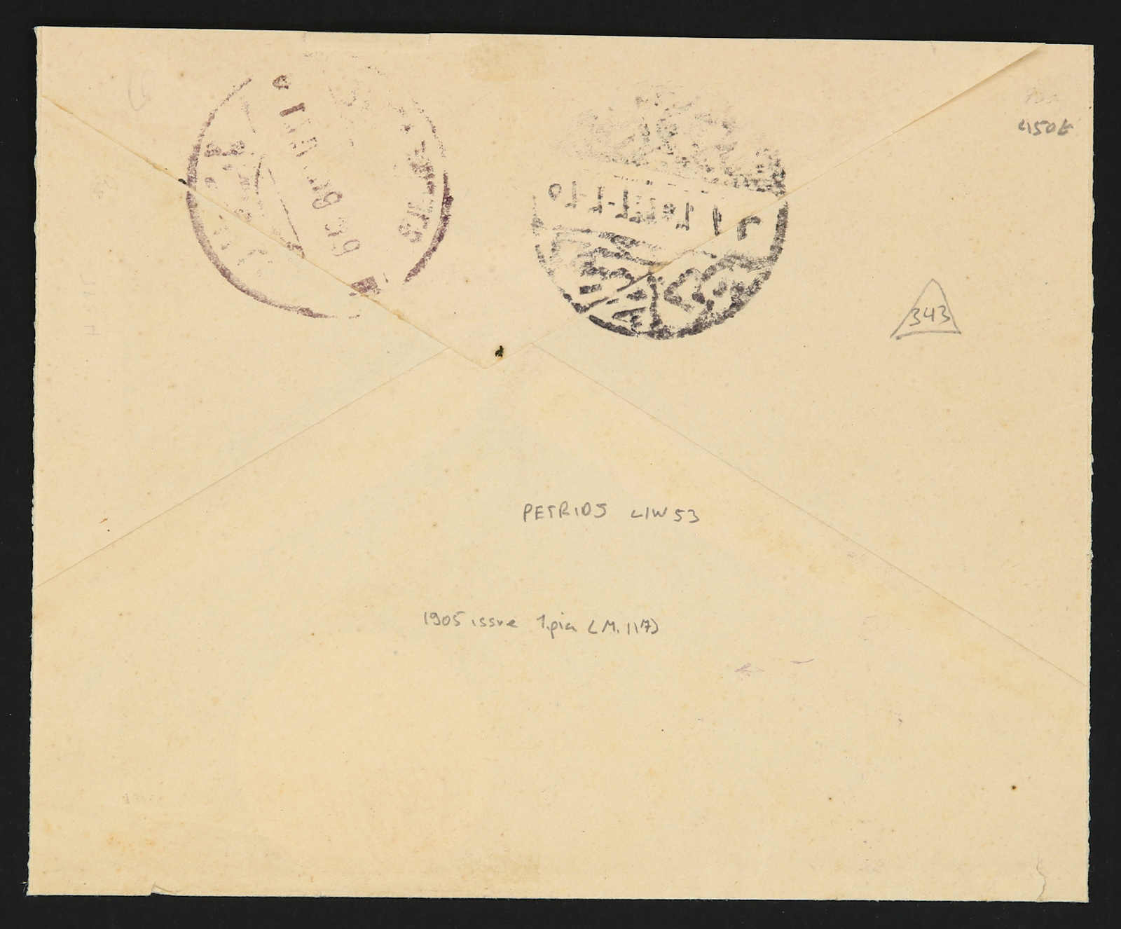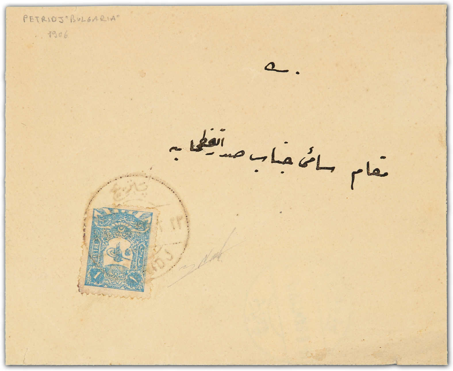 Petrich - Petric: 1906, cover bearing single franking 1905 issue 1 piastre blue tied by bilingual "PETRIDJ" postmark (Coles & Walker fig. 53) sent to Constantinople (Image) (imagea)