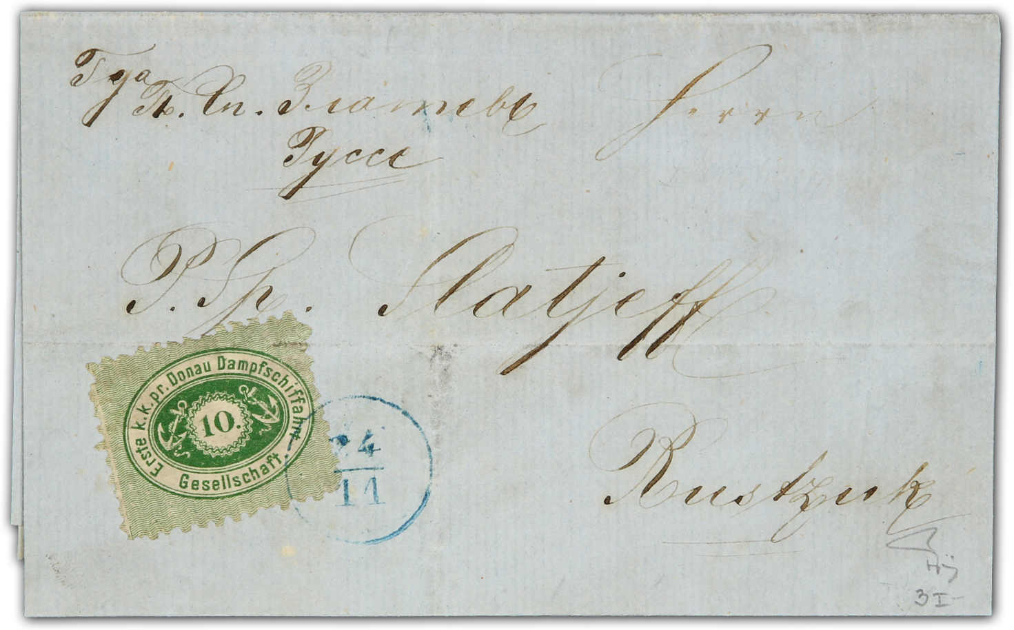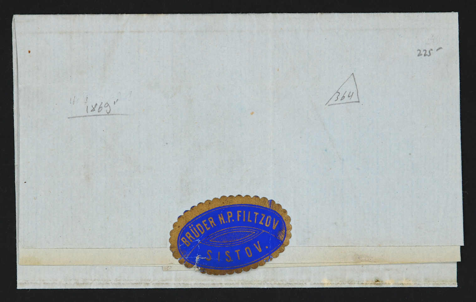 5364 Brief imageSvishtov - Ziştovi - Sistov: 1869, entire from Sistov to Rustchuk bearing single franking 1868/79 10 kr. green tied by single circle date stamp (24/11) in blue (Tchilinghirian fig. 928A), reverse with sender's label (Image) (imagea)