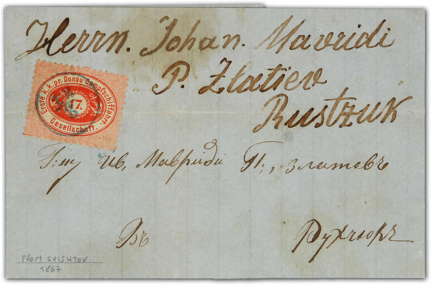 5365 Brief imageSvishtov - Ziştovi - Sistov: 1867, entire letter from Sistov to Rustchuk bearing single franking 1866/67 17 kr. red tied by single circle date stamp (12/8) in blue (Tchilinghirian fig. 928A) (Image) (imagea)