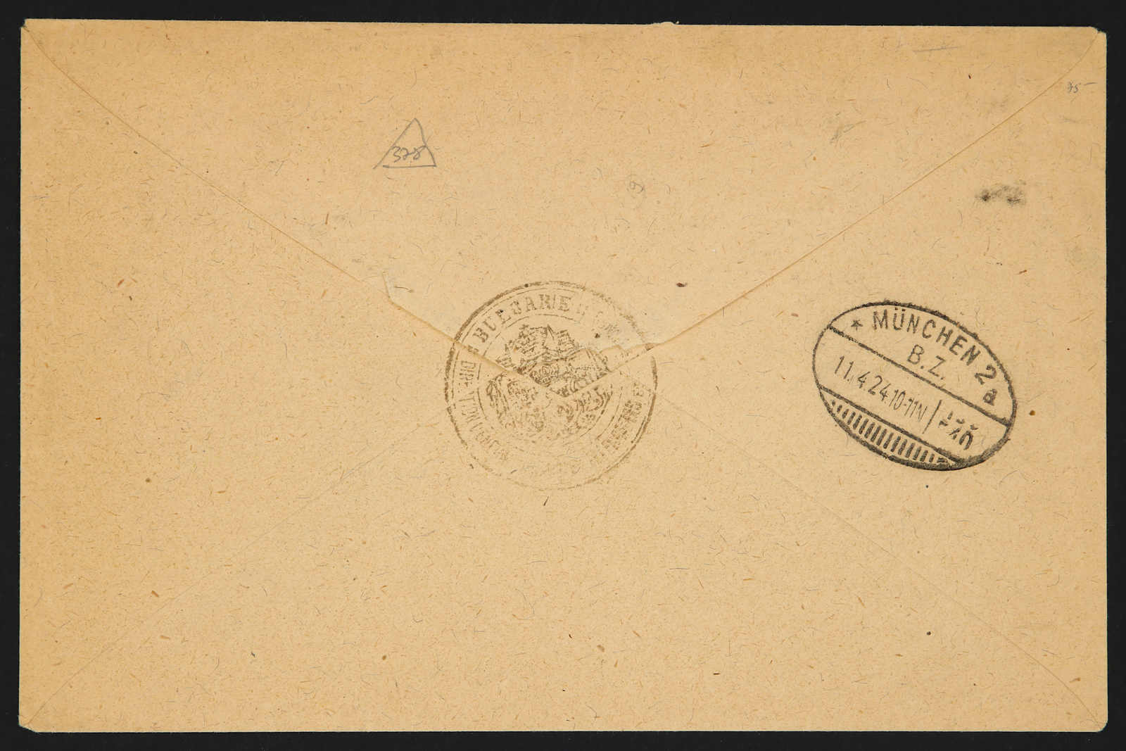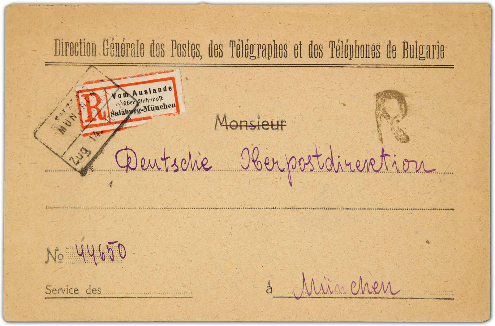 5378 Brief image1924, official post office cover sent registered to Munich post office alongside showing red & black "Salzburg-München" railway registration label (Image) (imagea)