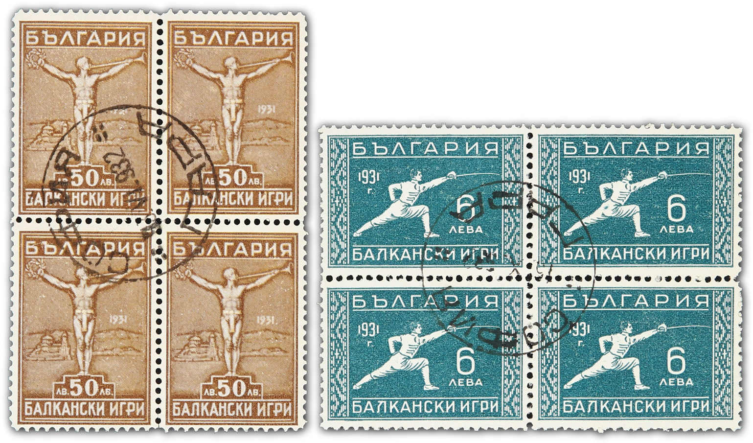 5379 gest. Michel:242/48(4) image1931, Balkan games full set block of four used (Image) (imagea) (imageb)