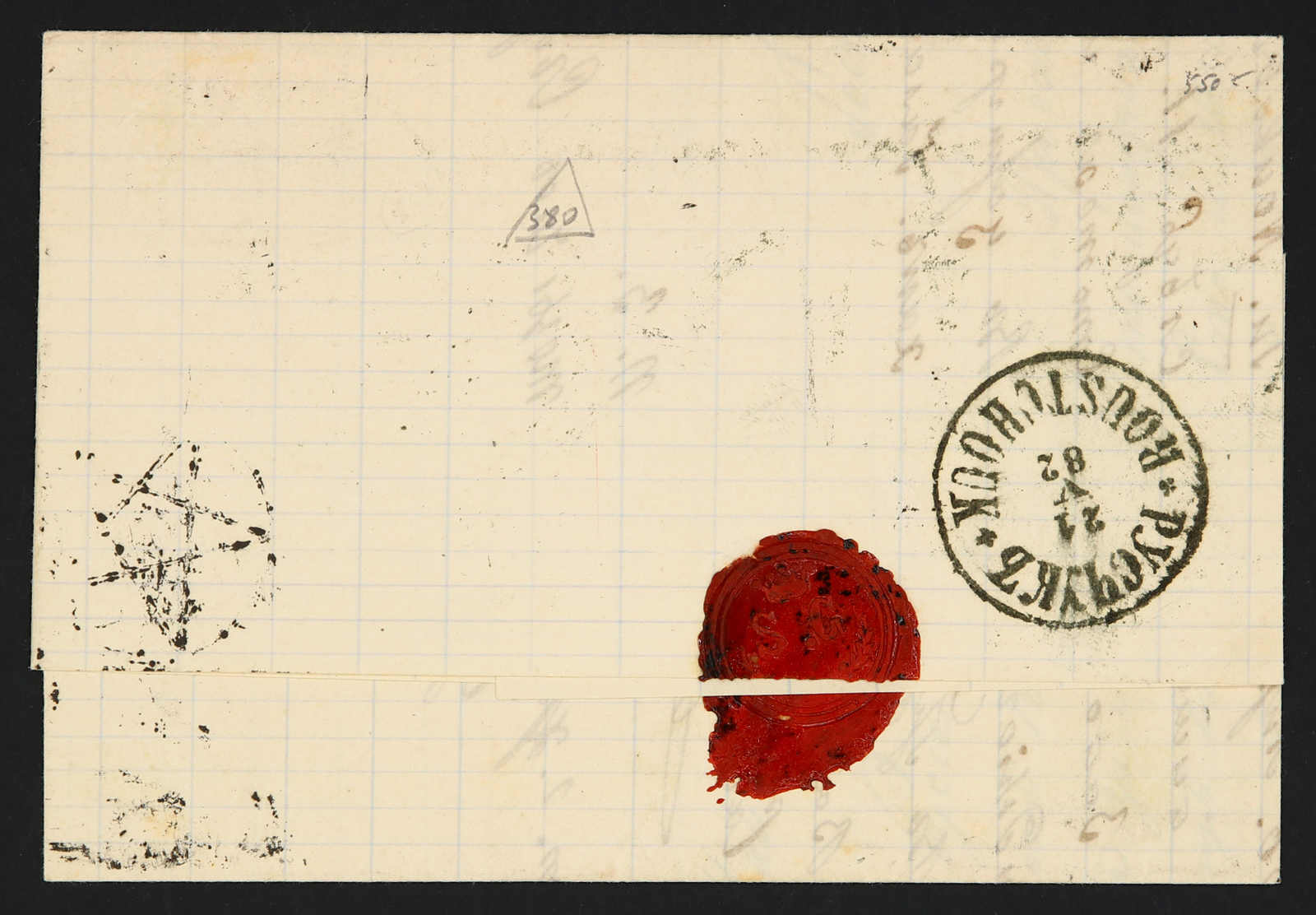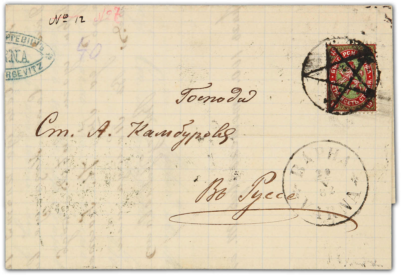 5380 Brief Michel:9 image1881 Second issue: entire letter dated '20 May 1882' sent from Varna to Russe bearing single franking 15 st. green & red tied by "Star and Circle" obliterator in black, alongside bilingual 'VARNA' handstamp in black, on reverse Roustchuouk arrival cds. (Image) (imagea)