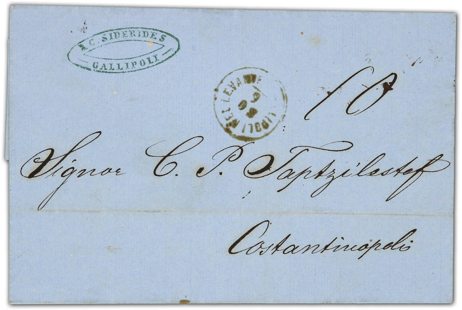 Gallipoli - Gelibolu: 1867, folded letter sent from Gallipoli to Constantinople showing single circle black "GALLIPOLI NEL LEVANTE", rare strike, Tch. fig. 967 (Image) (imagea)