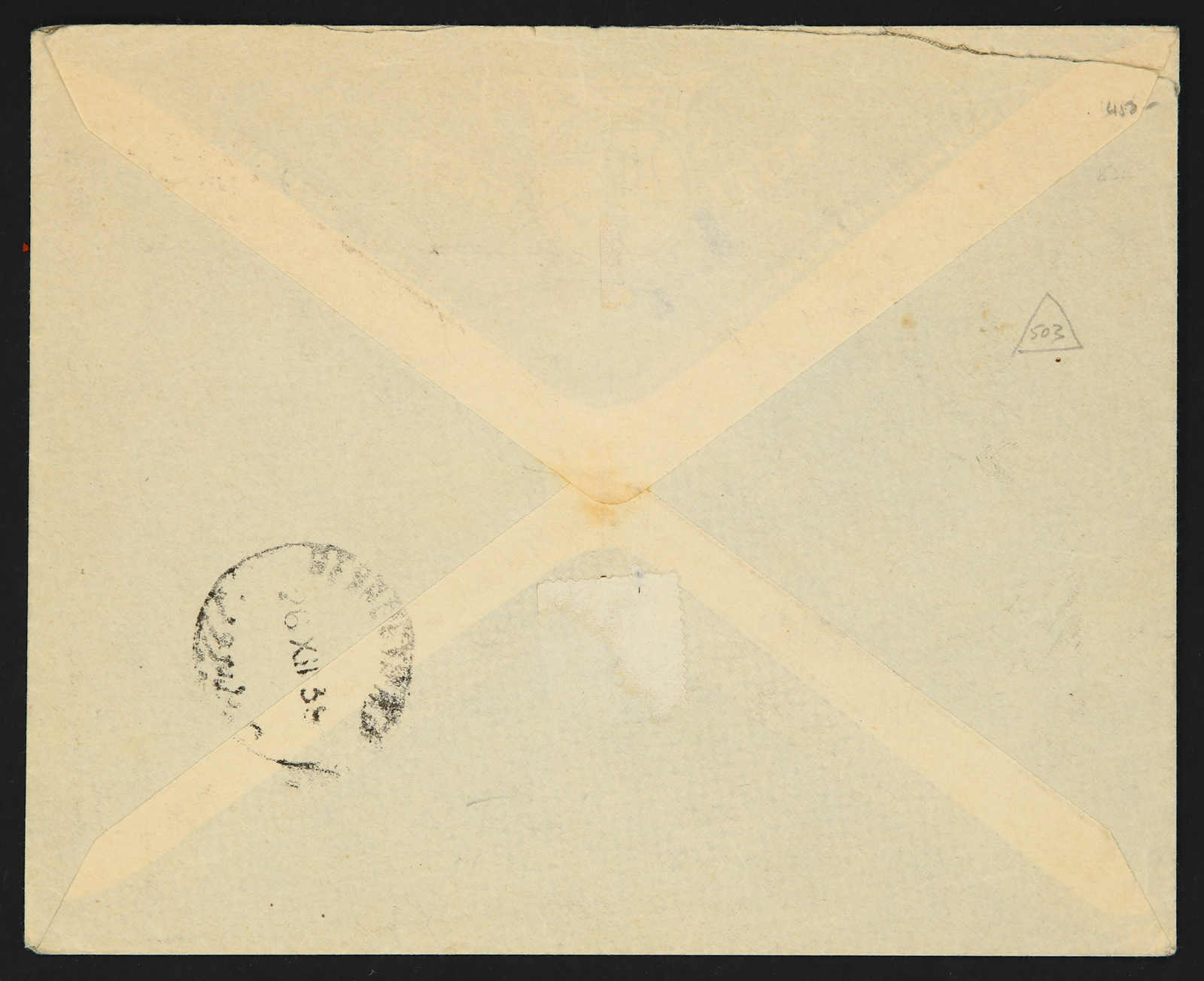 bilingual "Alexandrette 4" dated 12.9.38 postmarks, alongside arrival and transit cds (Yvert 3+4+5+6+7+12), also "R" white-black registration label No. 300