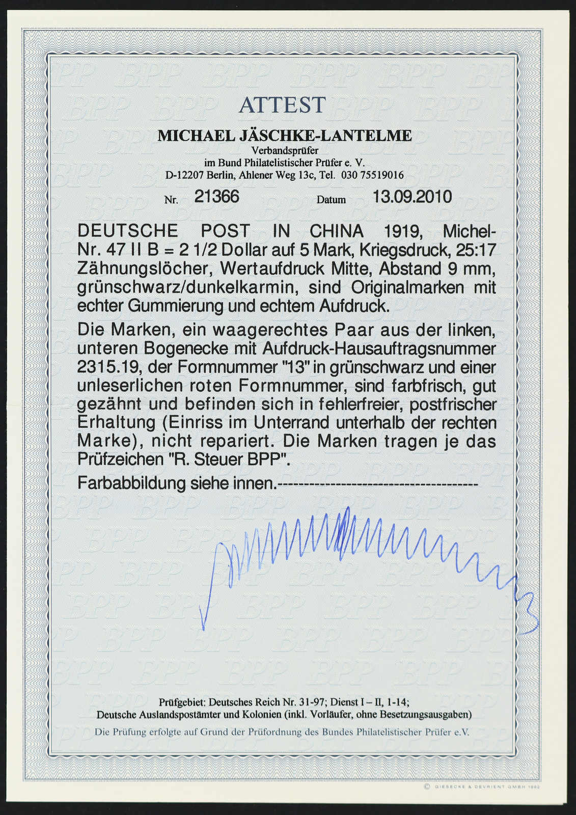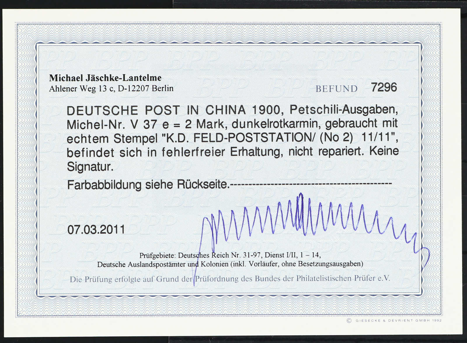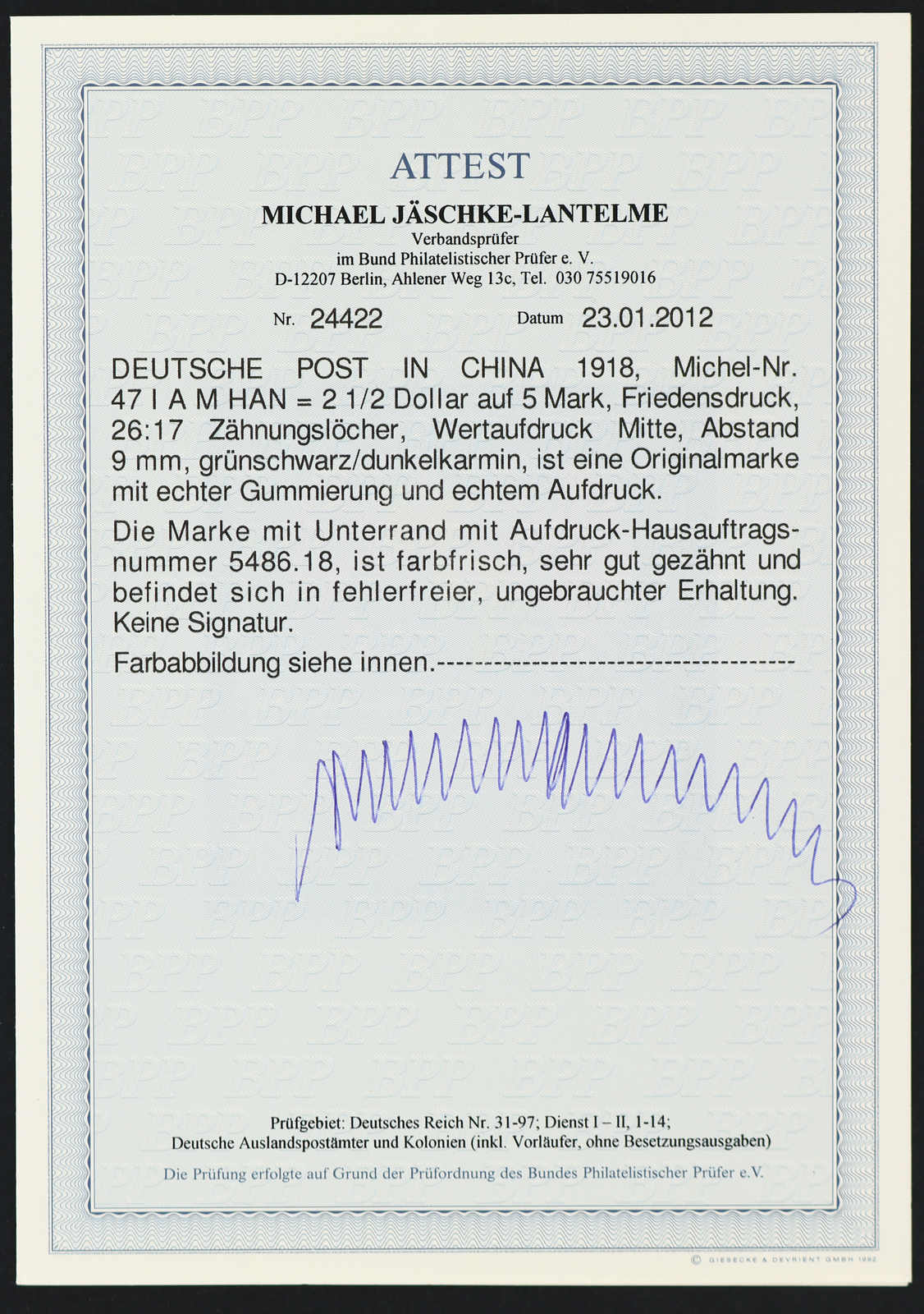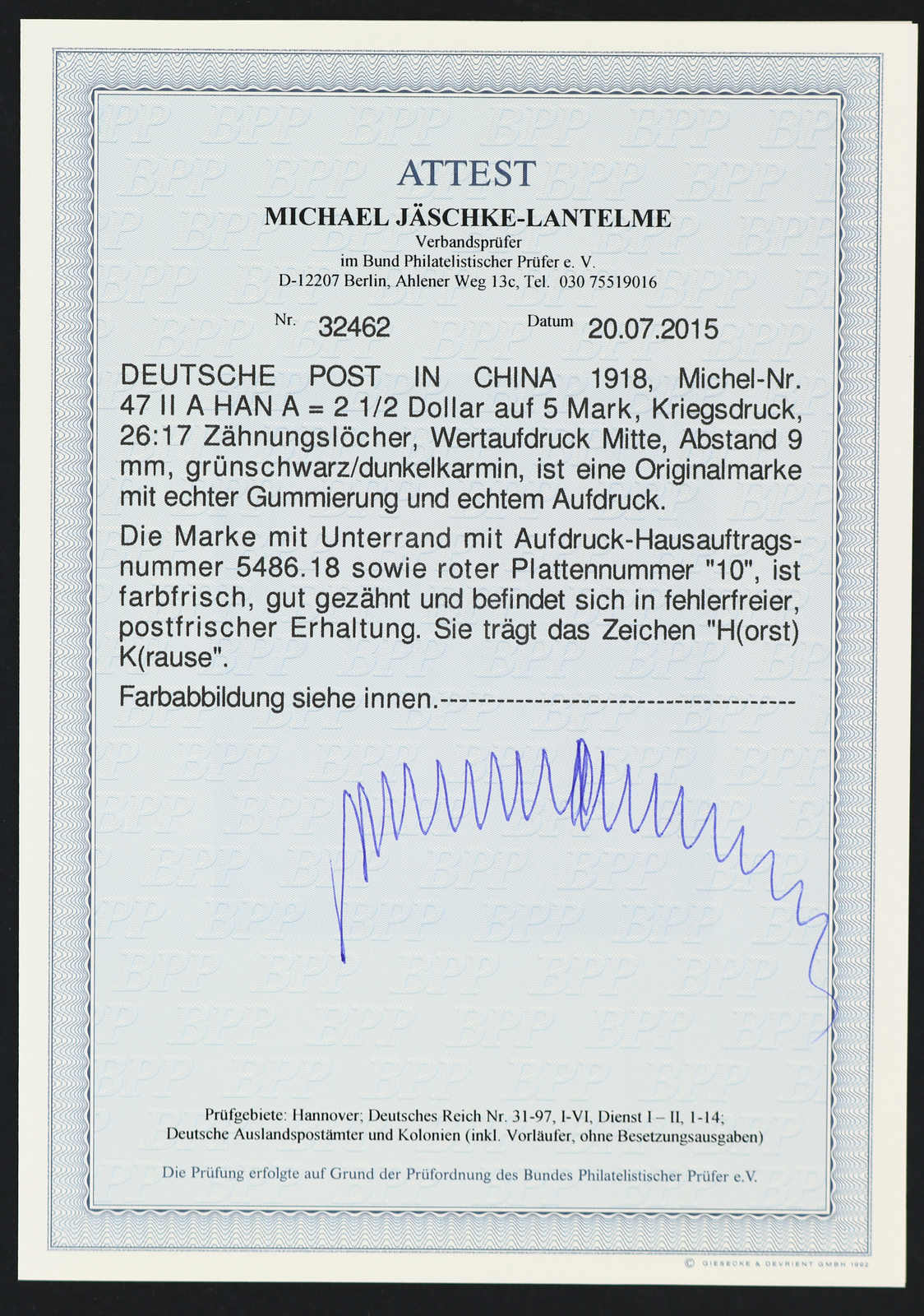 die P V ag einwandfrei, signiert u.a. Bothe BPP, Fotoattest Jäschke-Lantelme BPP (ME 1.048,-) (Image) (imagea)