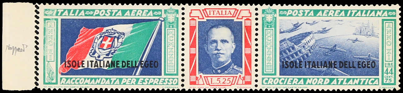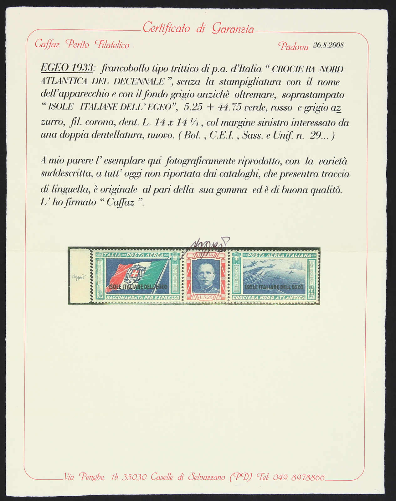 1933, "Crociera Balbo", hinged, double perforation at left, up to today the only known piece, certificate Caffaz (Image) (imagea)