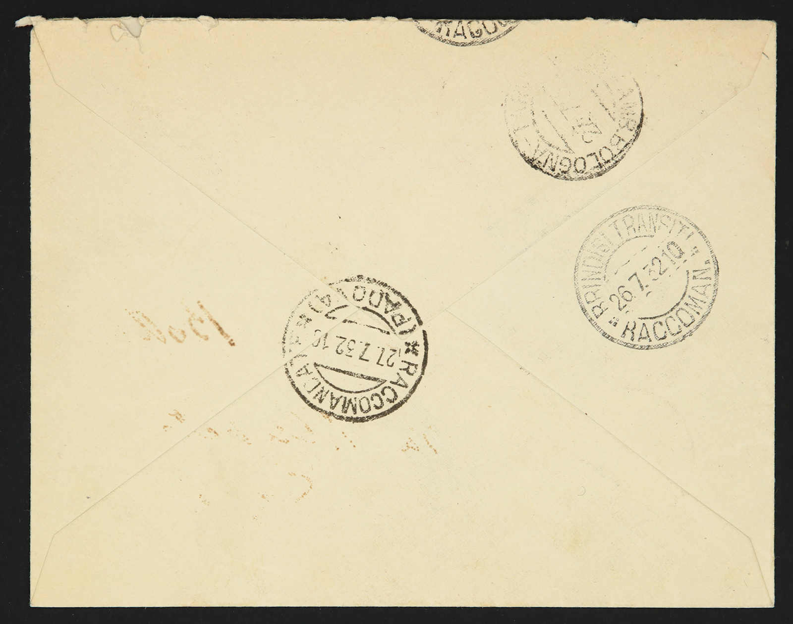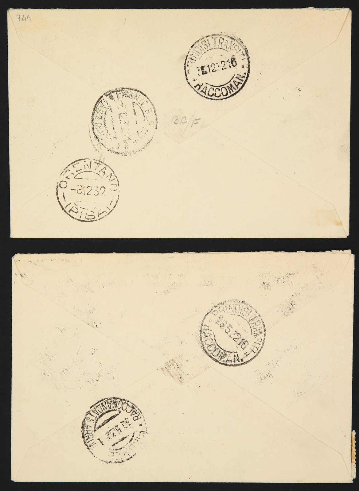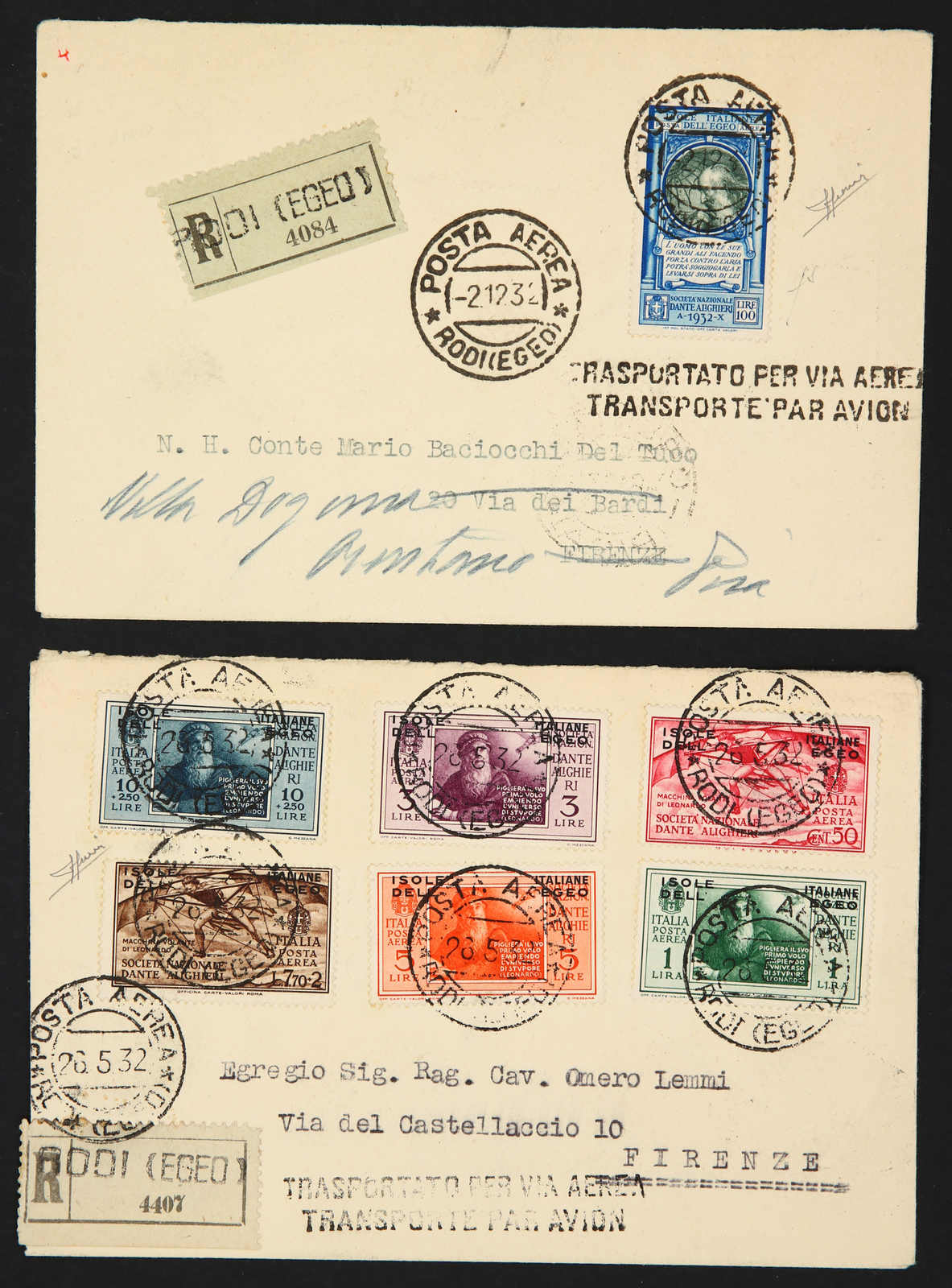 1932, Dante Alighieri Society funds issue, full set on three covers and other cover bearing special airmail 100 lire, all on registered covers sent from Rodi to Firenze (Sassone 1980 €) (Image) (imagea)