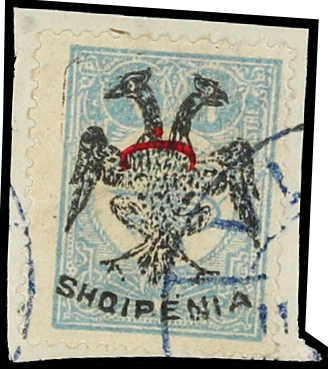1913, 1pia ovp with double eagle on ottoman stamp with Beyiye, ovp INVERTED, on piece with cancel of Vlora, very fine, certificate Dr. Peters AIEP