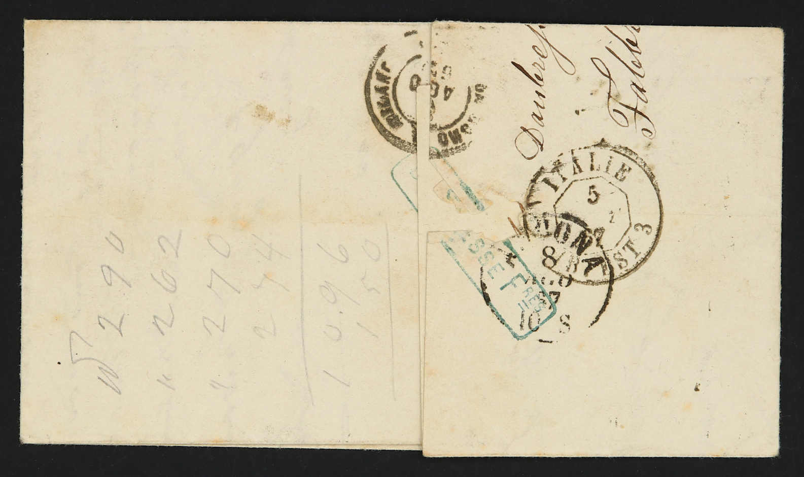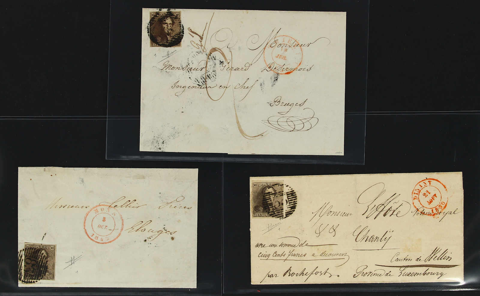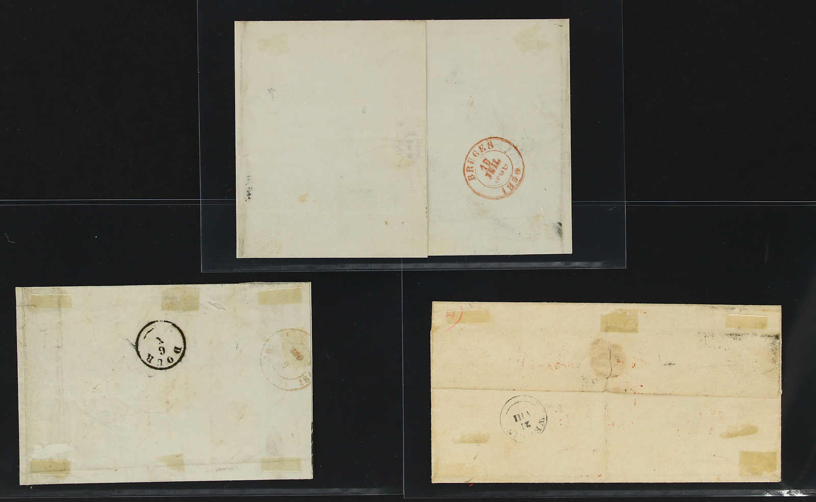 1850, drei Faltbriefe je mit 10 C. braun frankiert und unterschiedlichen Entwertungen (Image) (imagea)