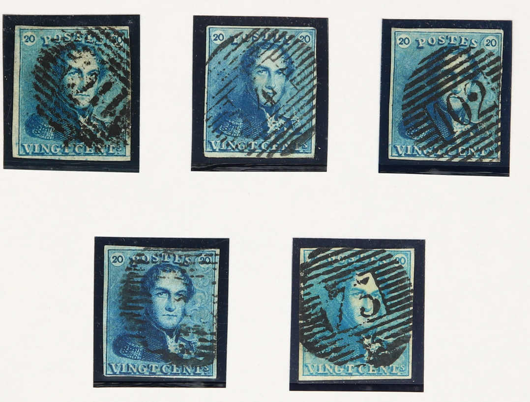 1849, 20 C. blau, fünf sauber gestempelte Exemplare (Image)