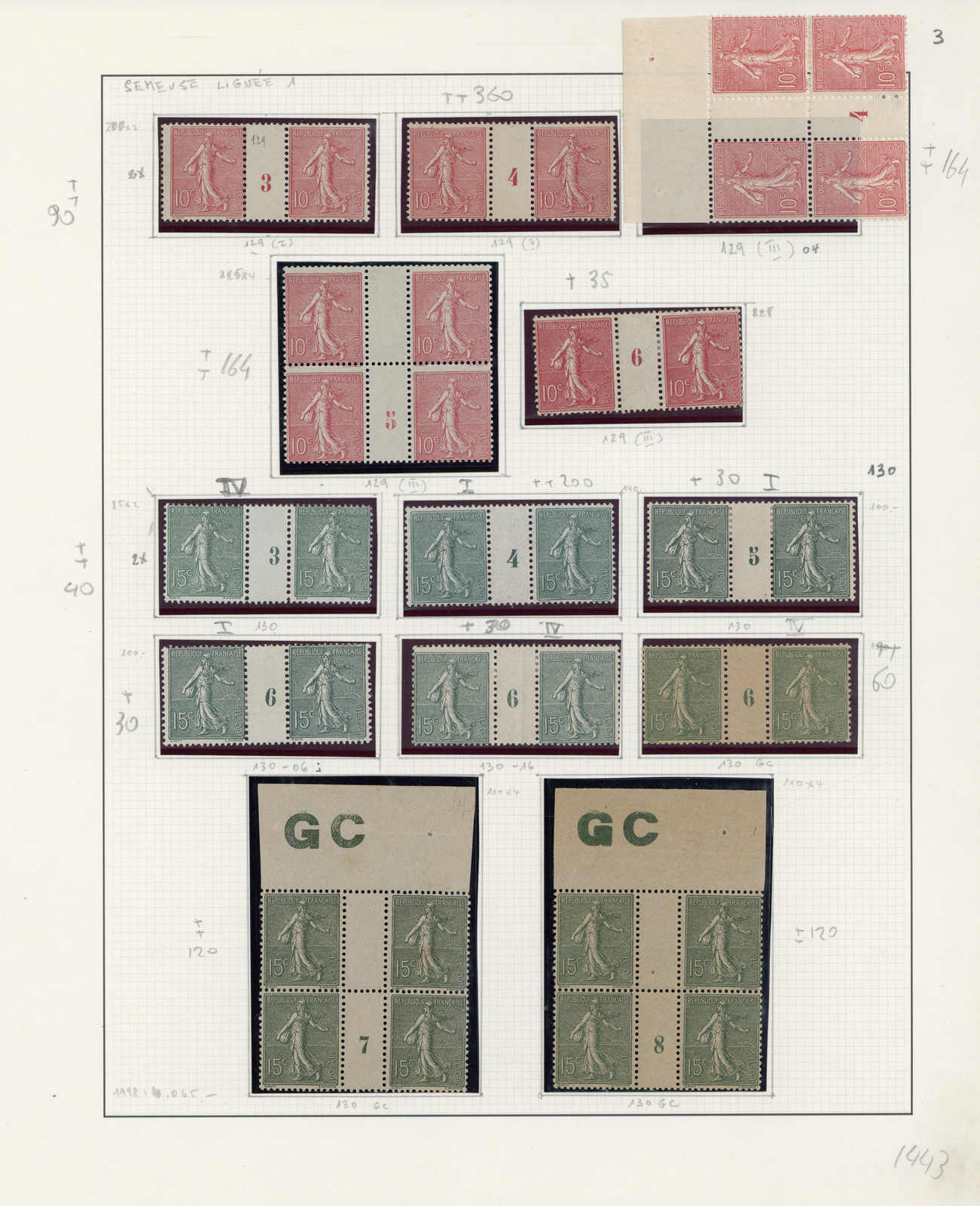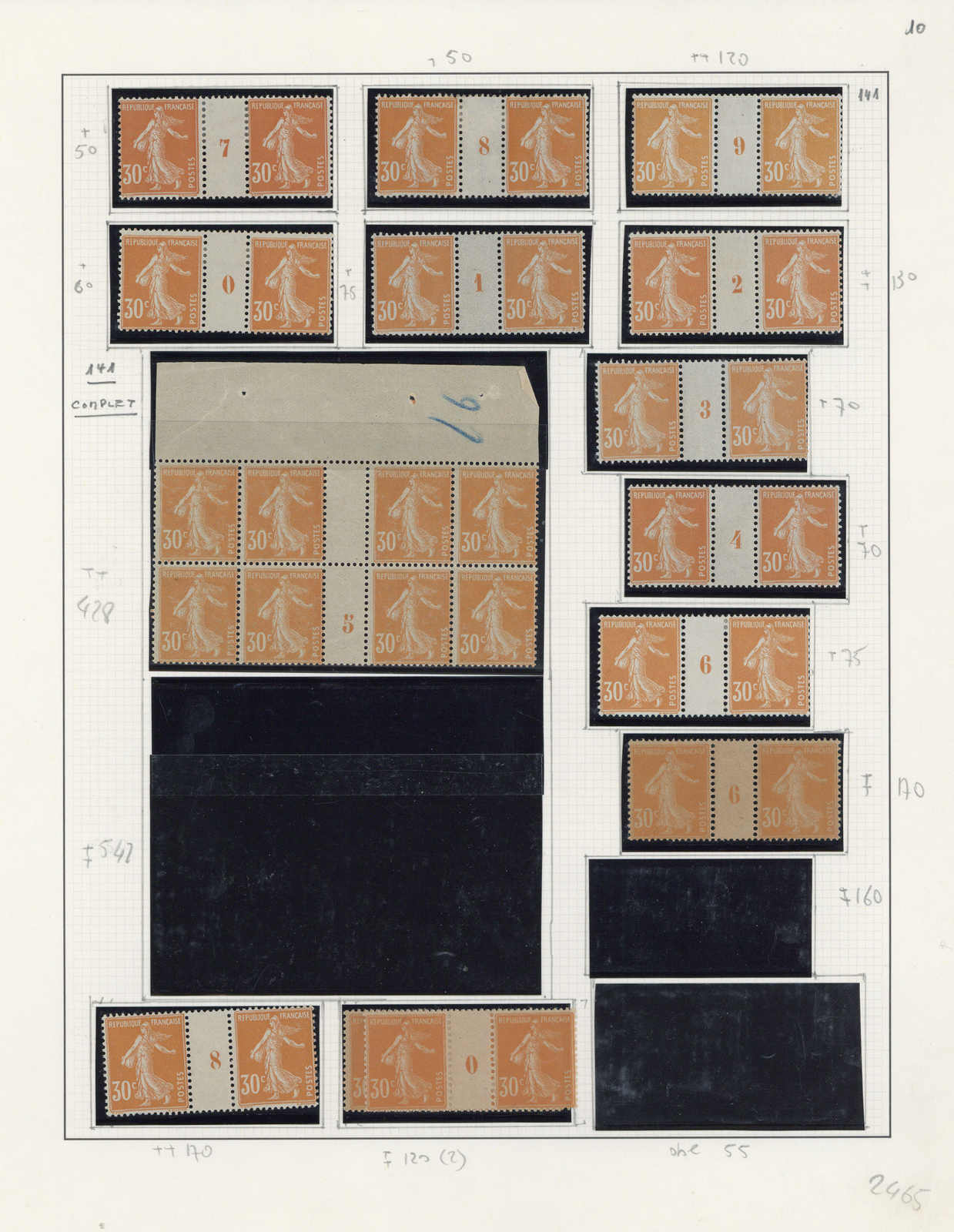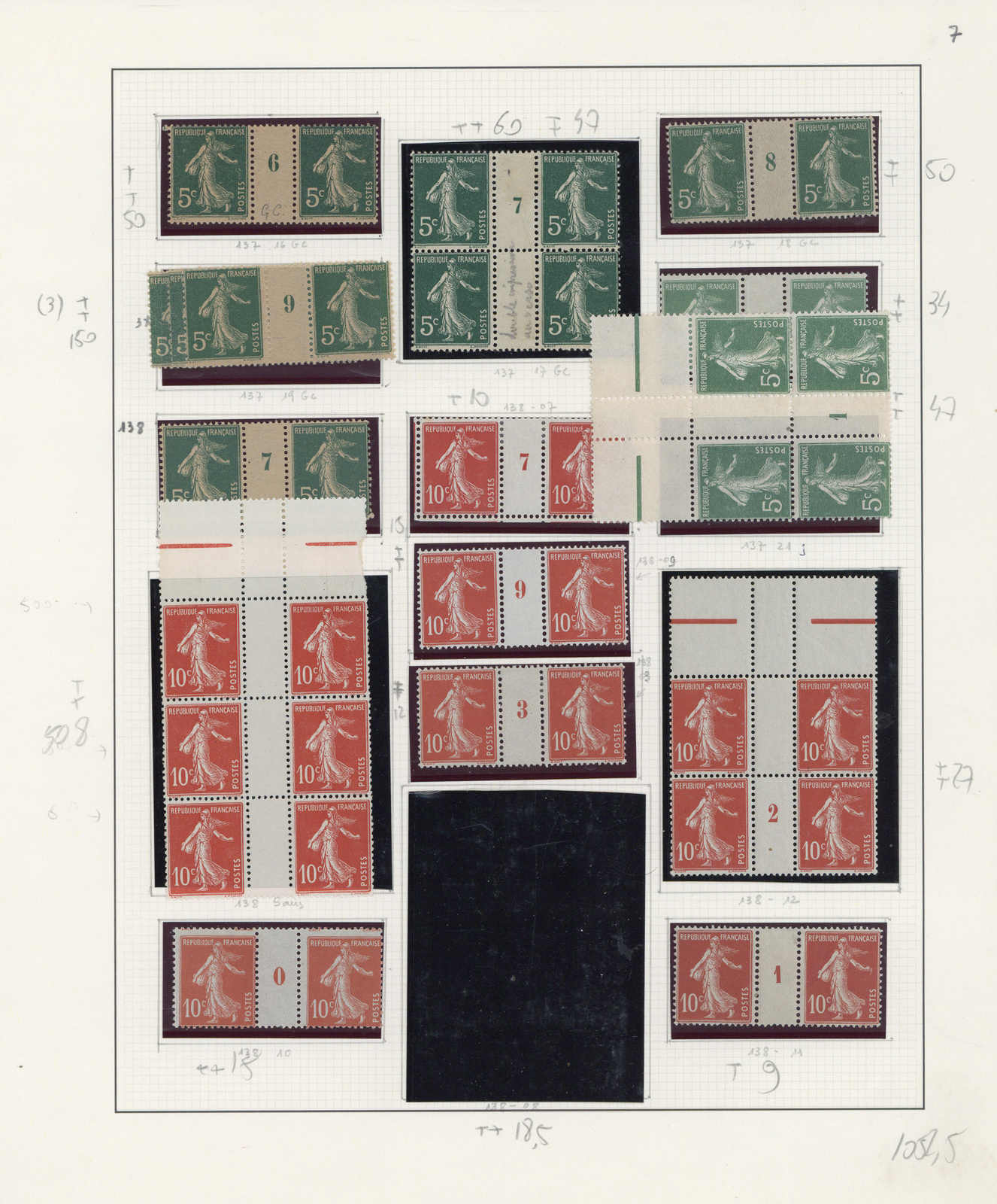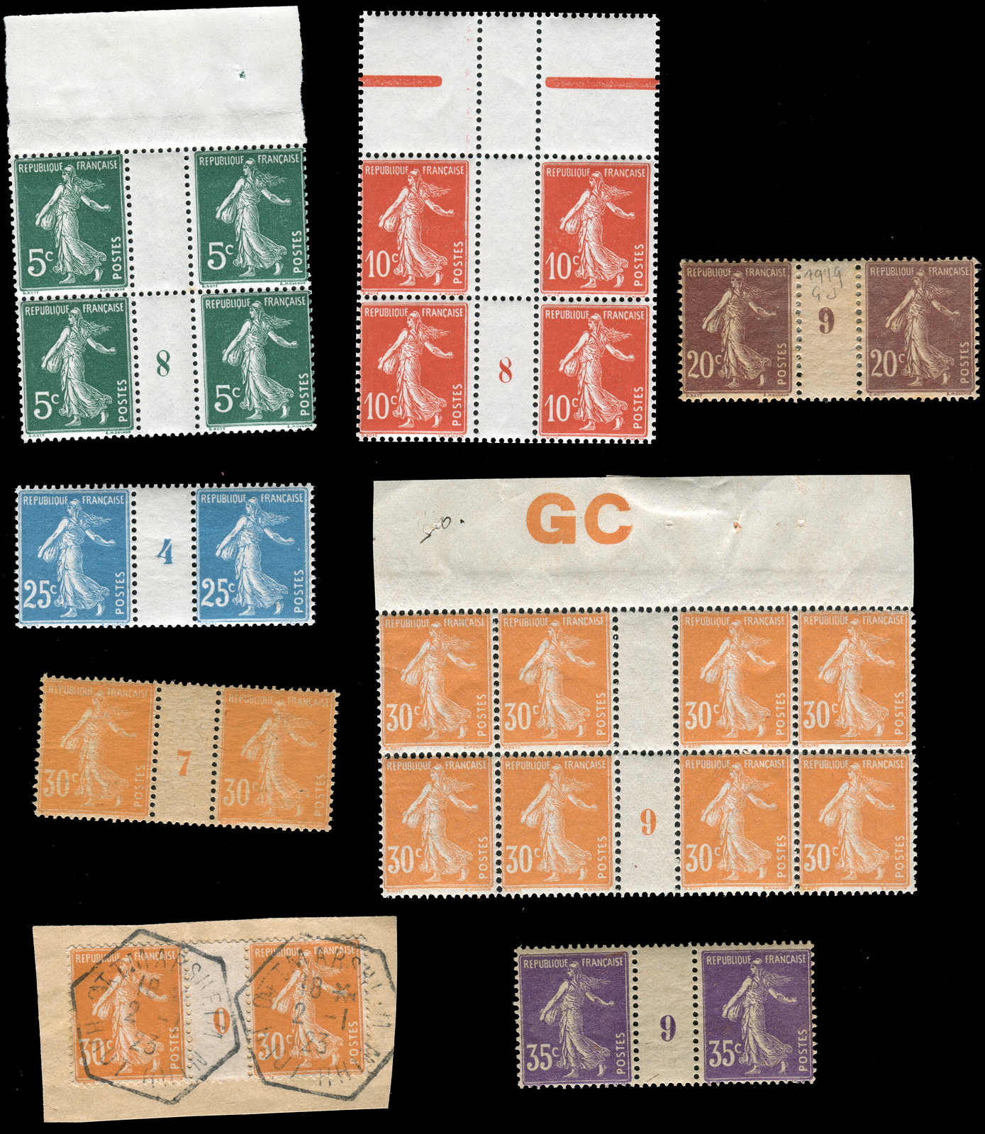 postfrischem waagerechten Zwischenstegpaar 5 C. Type I Jahrgang 0, dazu ungebrauchte Paare 5 C. Type II der Jahrgänge 8 und 9 sowie ungebrauchte Paare 10 C. Jahrgang 8, 9, und 0, dazu je ein ungebrauchtes Paar 50 C. Type I und 2 Fr. Jahrgang 0, 2 Fr.