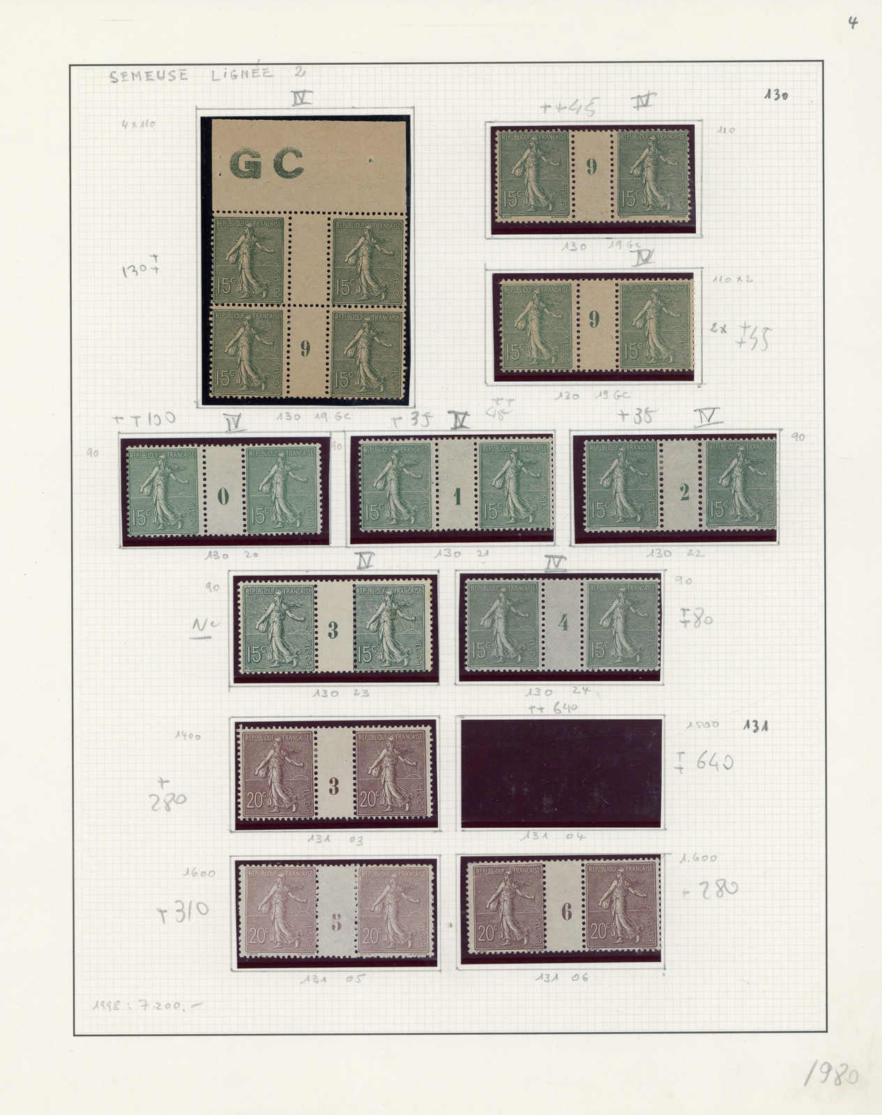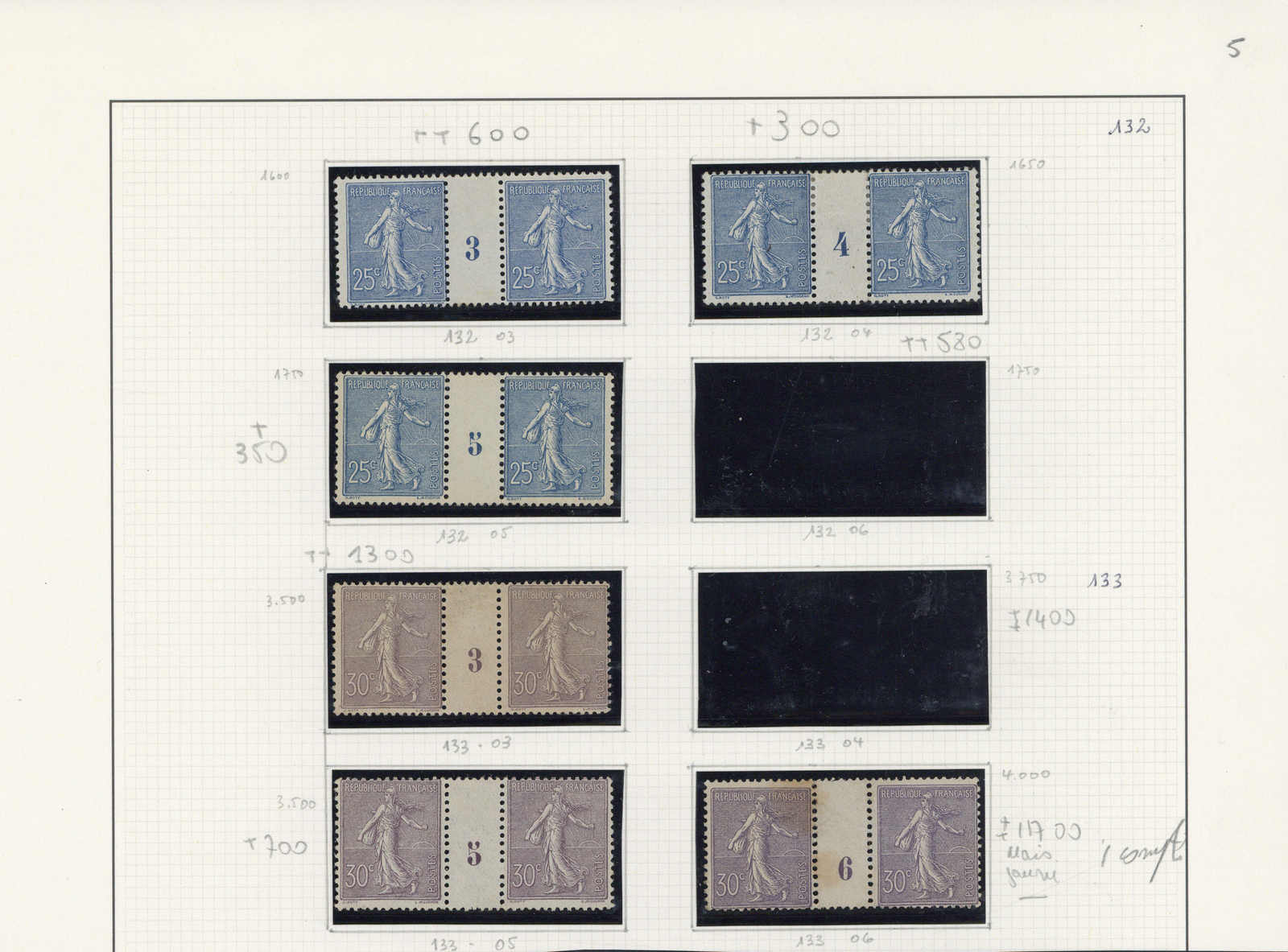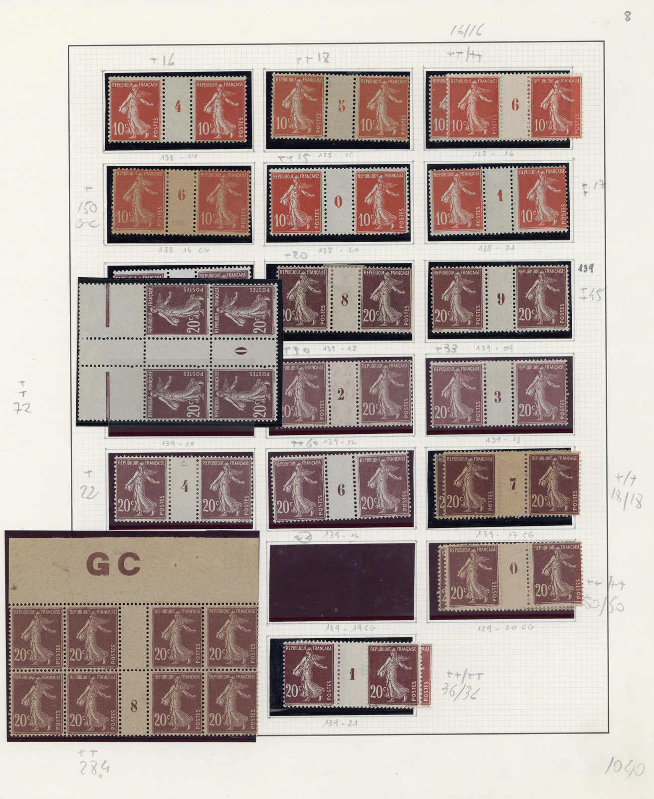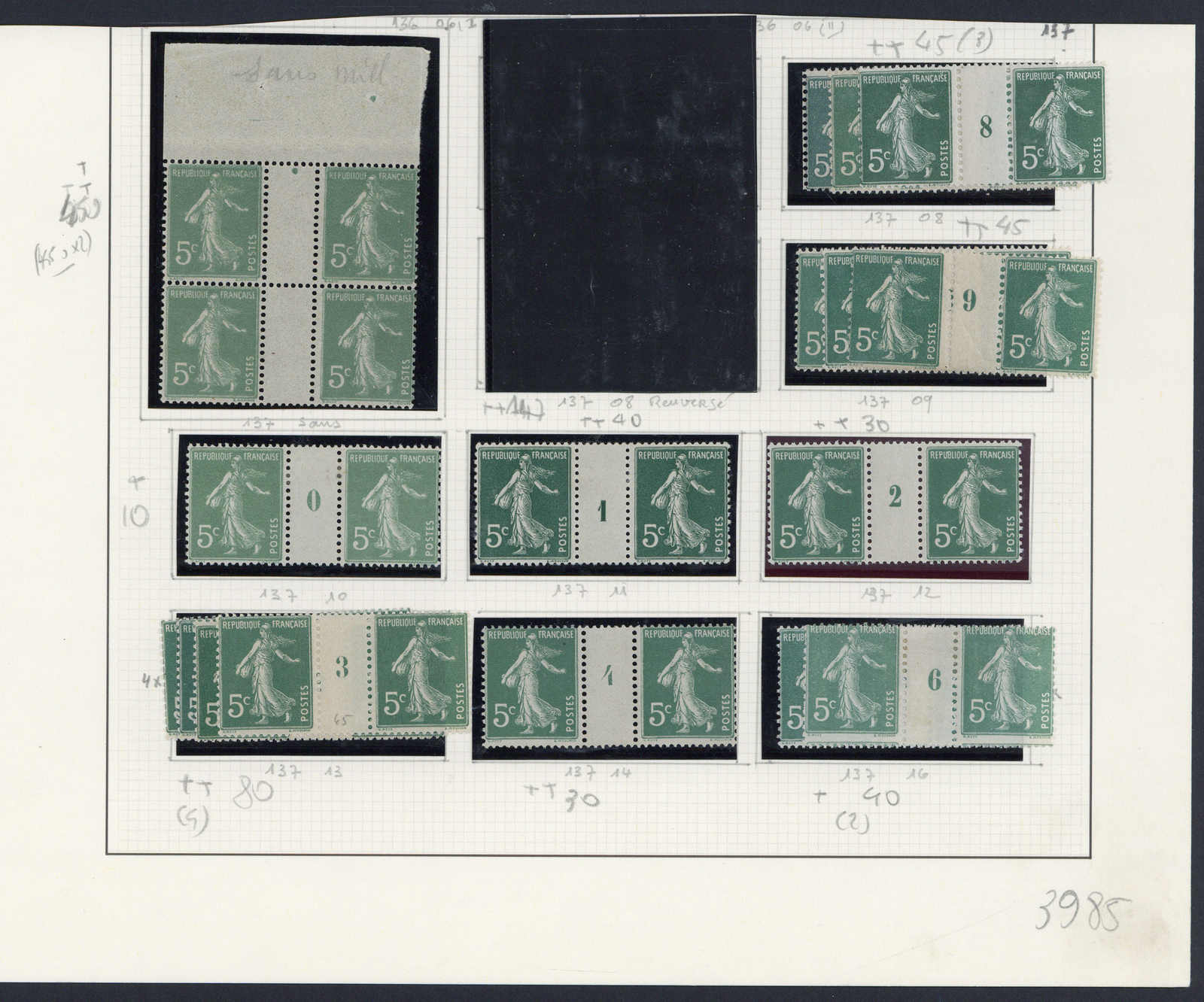 postfrischem waagerechten Zwischenstegpaar 5 C. Type I Jahrgang 0, dazu ungebrauchte Paare 5 C. Type II der Jahrgänge 8 und 9 sowie ungebrauchte Paare 10 C. Jahrgang 8, 9, und 0, dazu je ein ungebrauchtes Paar 50 C. Type I und 2 Fr. Jahrgang 0, 2 Fr.