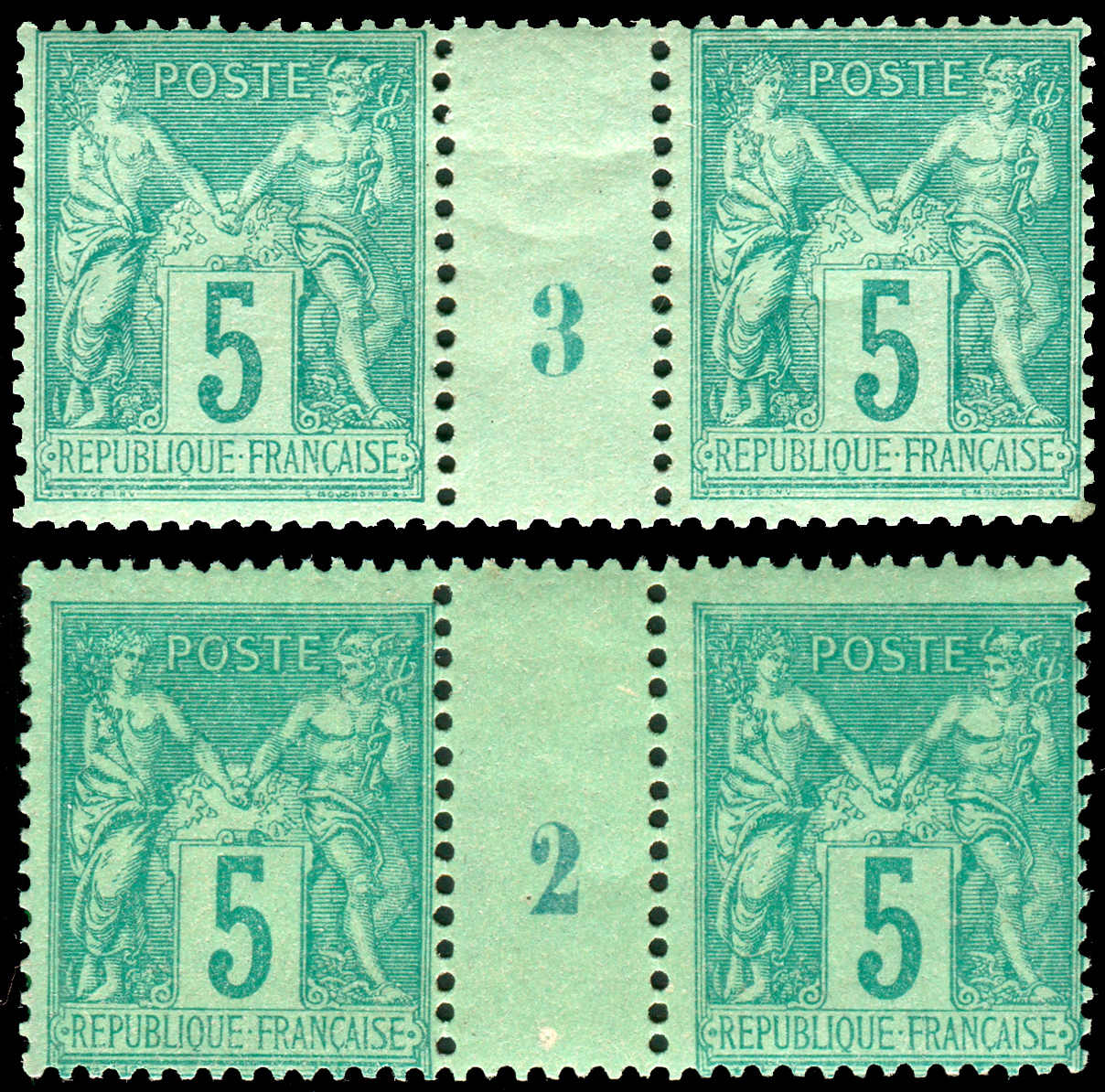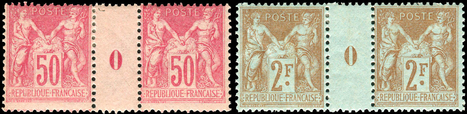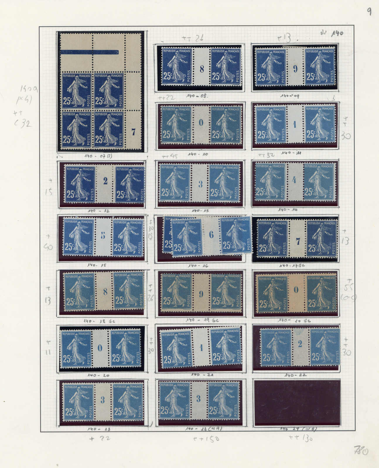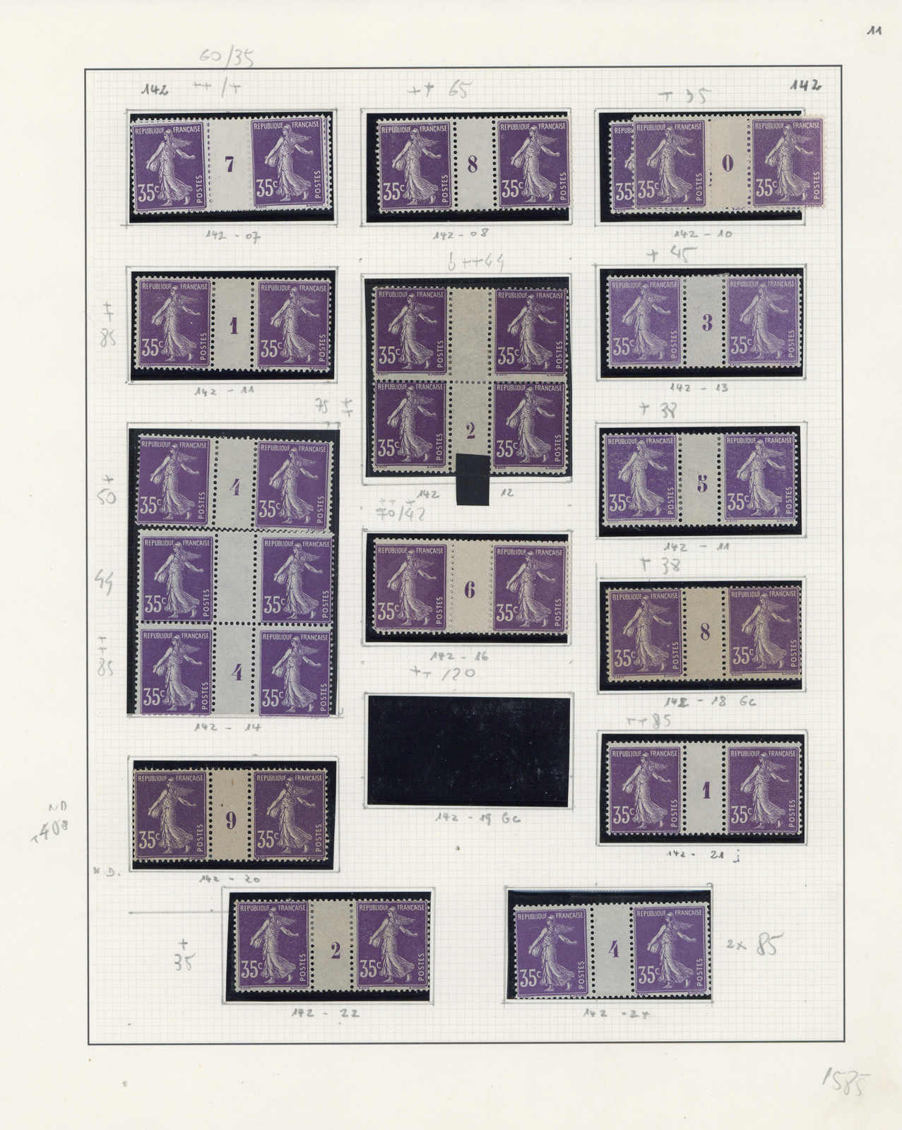 postfrischem waagerechten Zwischenstegpaar 5 C. Type I Jahrgang 0, dazu ungebrauchte Paare 5 C. Type II der Jahrgänge 8 und 9 sowie ungebrauchte Paare 10 C. Jahrgang 8, 9, und 0, dazu je ein ungebrauchtes Paar 50 C. Type I und 2 Fr. Jahrgang 0, 2 Fr.
