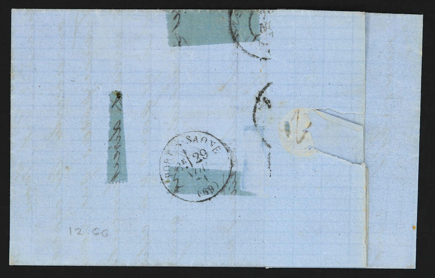 Elsaß-Lothringen: 1871, Mischfrankatur von Colmar nach Port Saone frankiert mit Elsaß-Lothringen 20 C. blau/grau entwertet durch Ortsstempel Colmar und Ceres 25 C. mit Entwertung durch Punktnummernstempel (Yvert A.6,37) (Image) (imagea)
