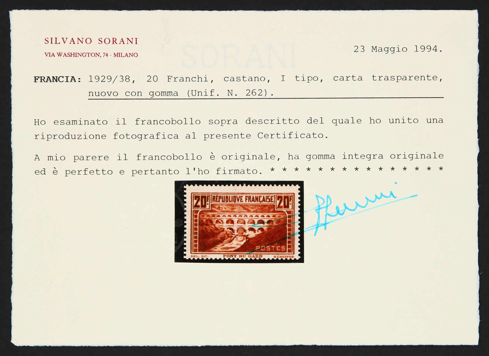 1929/31, 20 Fr. Type I hgezähnt 13 postfrisch, Attest Sorani (Image) (imagea)
