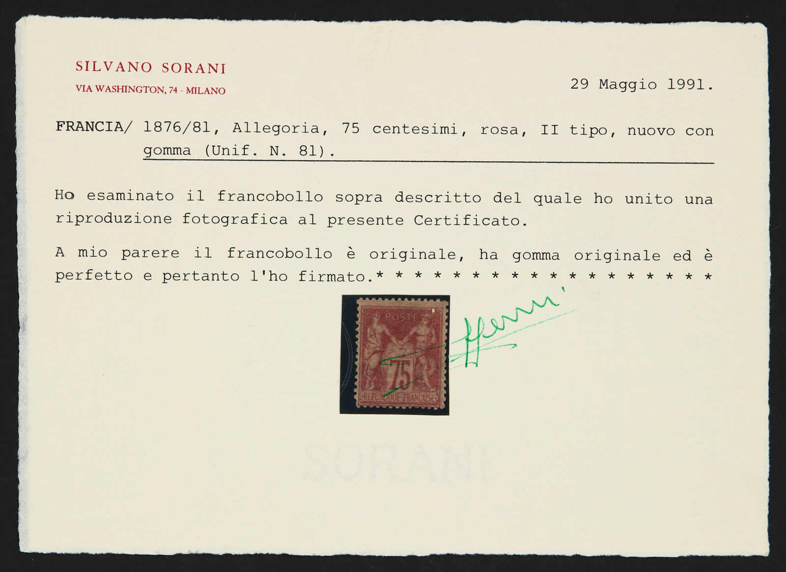 1885, 75 C. Type Sage II postfrisch, Attest Sorani (Image)