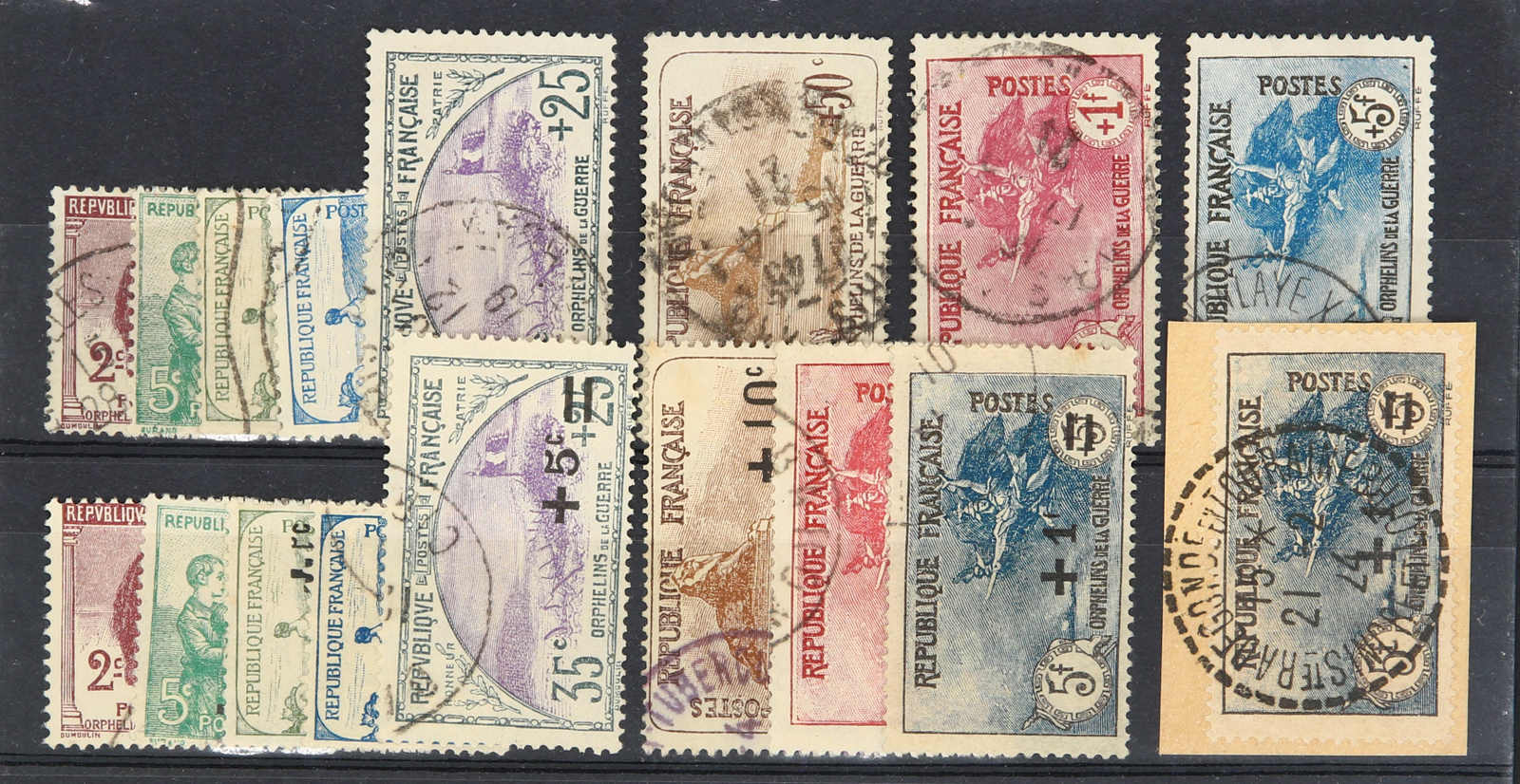 1917/22, Kriegswaisen 1917/18 und 1922 je sauber gestempelt im kompletten Satz, dazu der Höchstwer von 1922 auf Briefstück (Image)