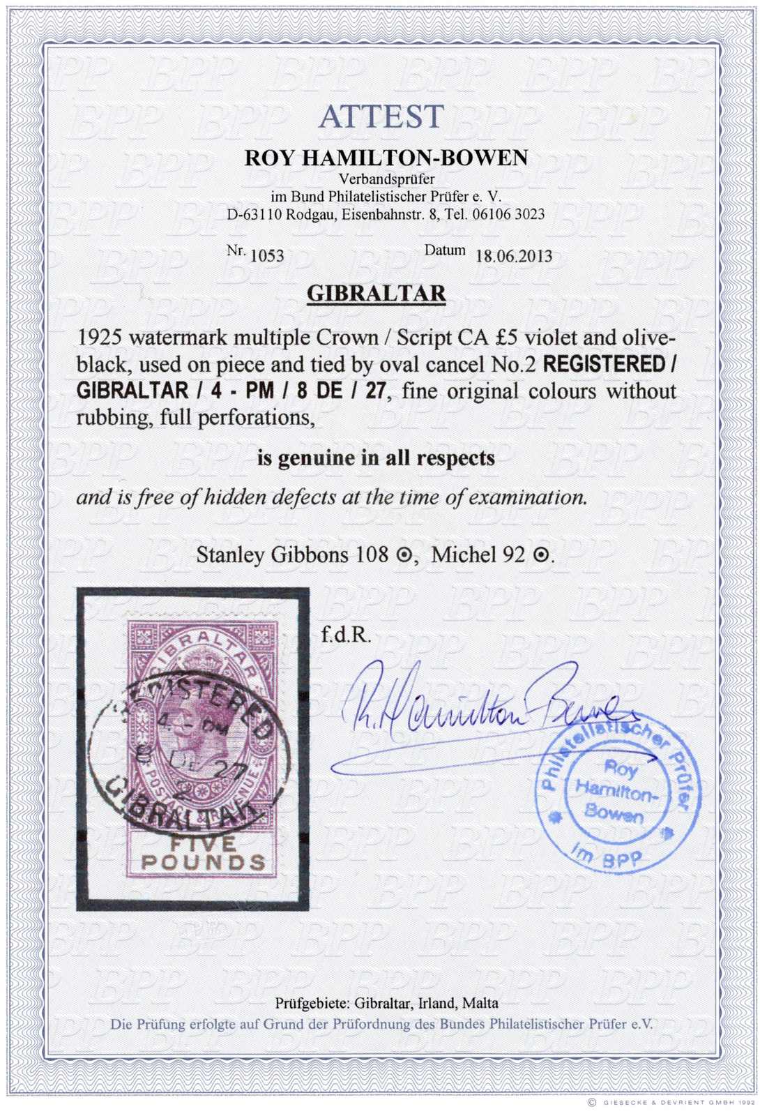Get Market Data for [Gibraltar Michel: 17 Großbr.] Visual Pricing Guide Sample Census