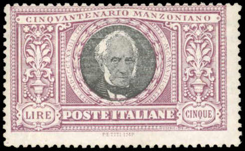 1923, 5 L. Alessandro Manzoni lila/schwarz, postfr. Einzelwert, farbfrisch und gut gezähnt, einwandfrei (ME 1.200,-) (Image)