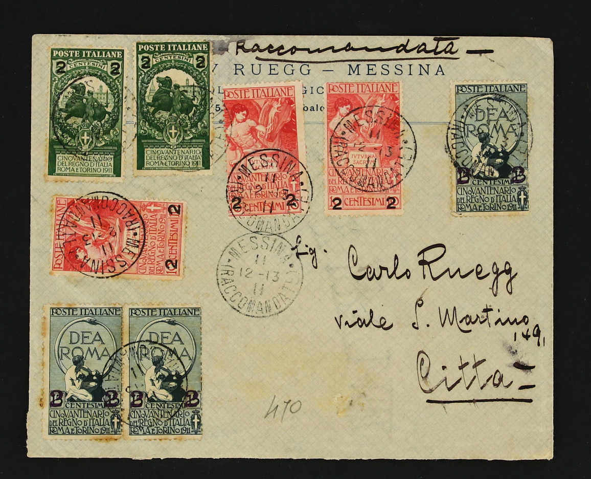 1913, full overprinted set on registered cover used by Messina postmarks, Sassone 99/101 (Image)