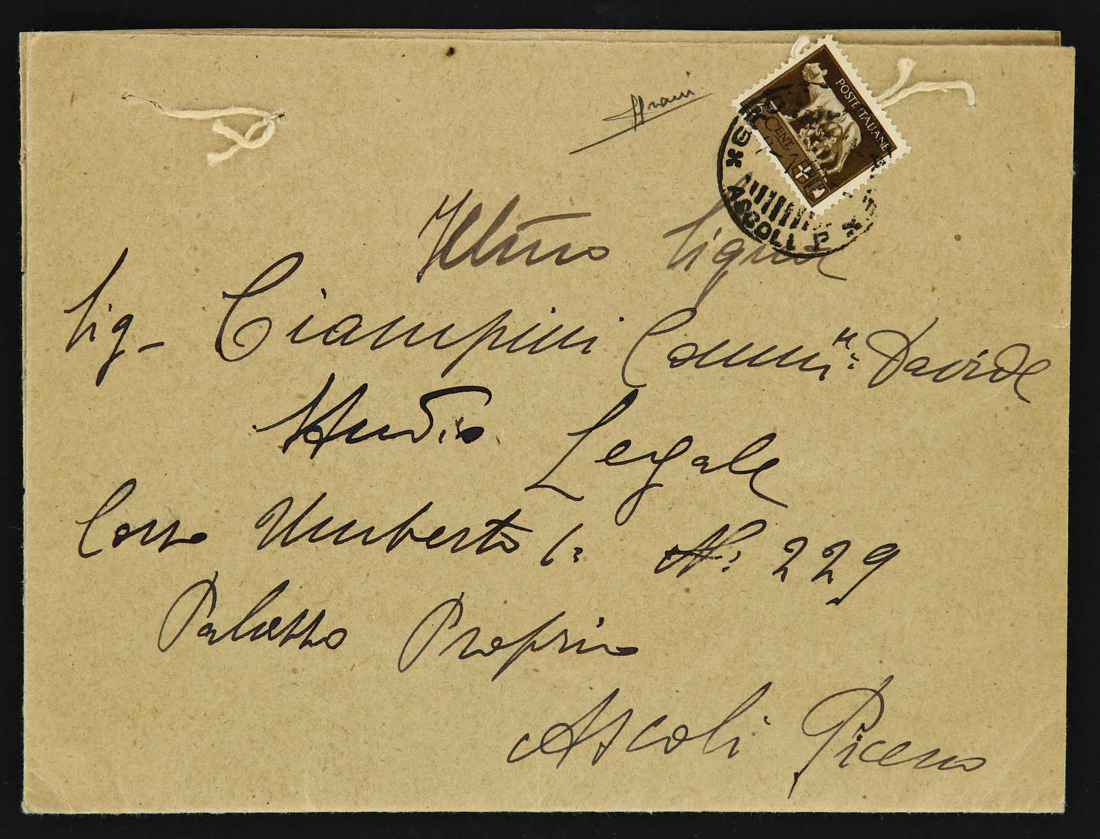 1929, entire letter bearing single franking of 5 cent properly used to pay extremely rare postage for the blind people, sent to Ascoli Piceno, Sassone 243, signed Sorani (Image) (imagea)