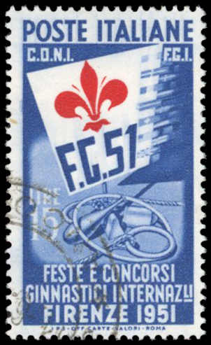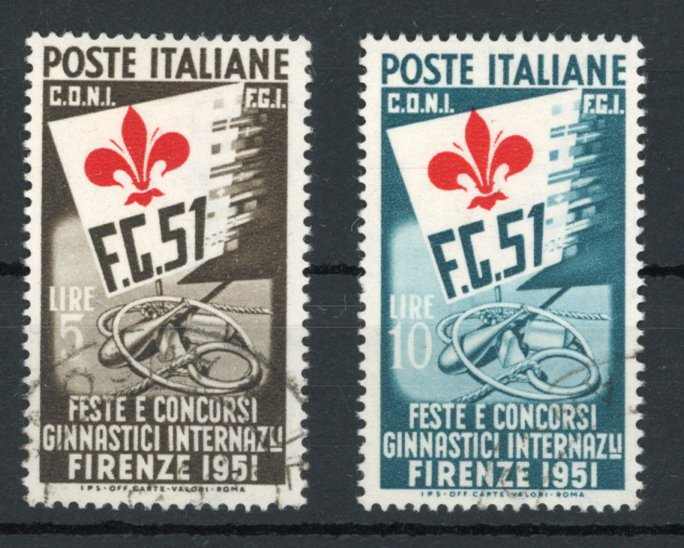 1951, 5 to 15l Gymnastics World Games Florence, cpl cancelled set of three values, fresh colours and well perforated, flawless (Image) (imagea)