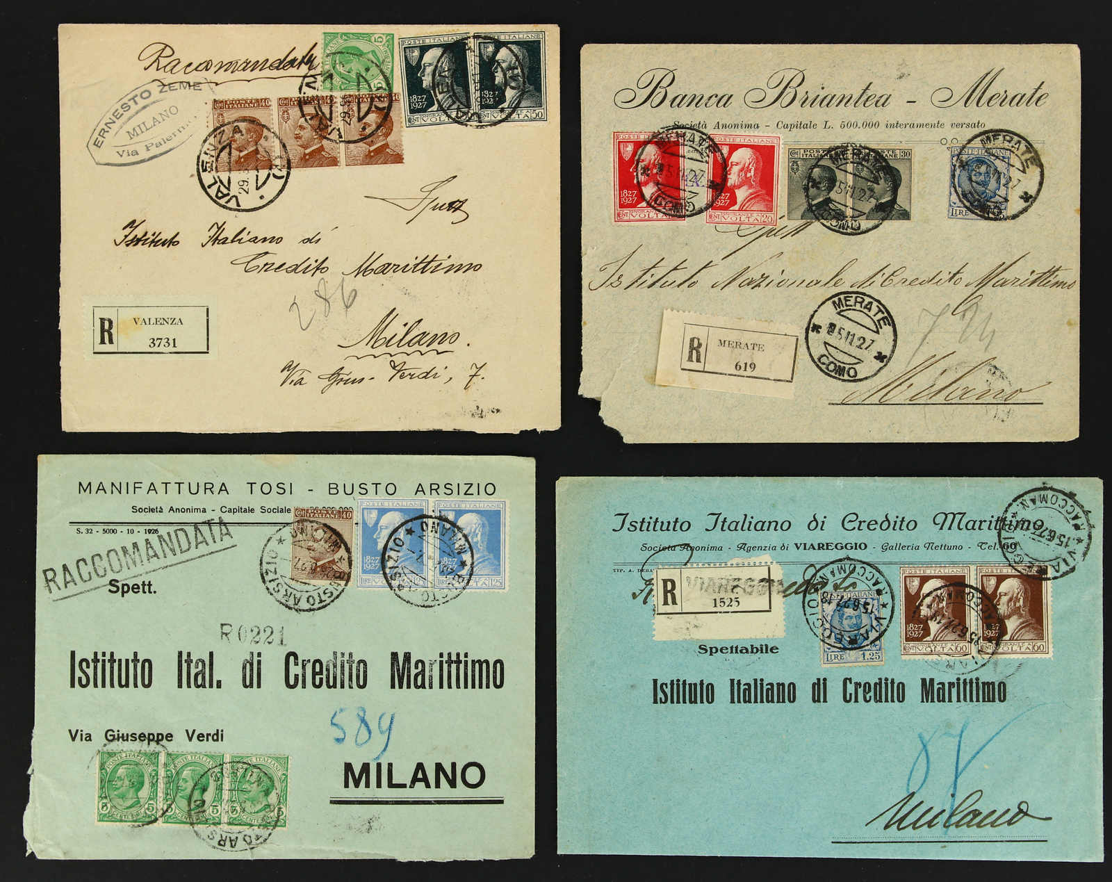 1925, Volta issue, full set on four registered covers properly used from diff. locations, Sassone 210/213 (Image)