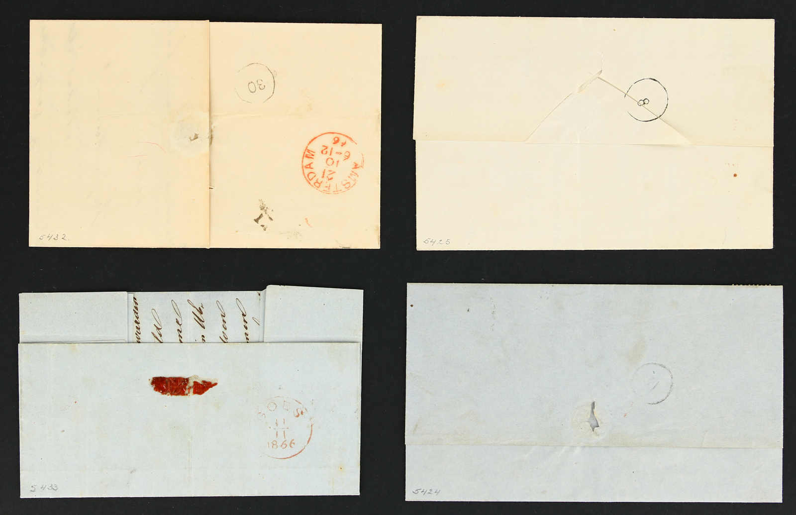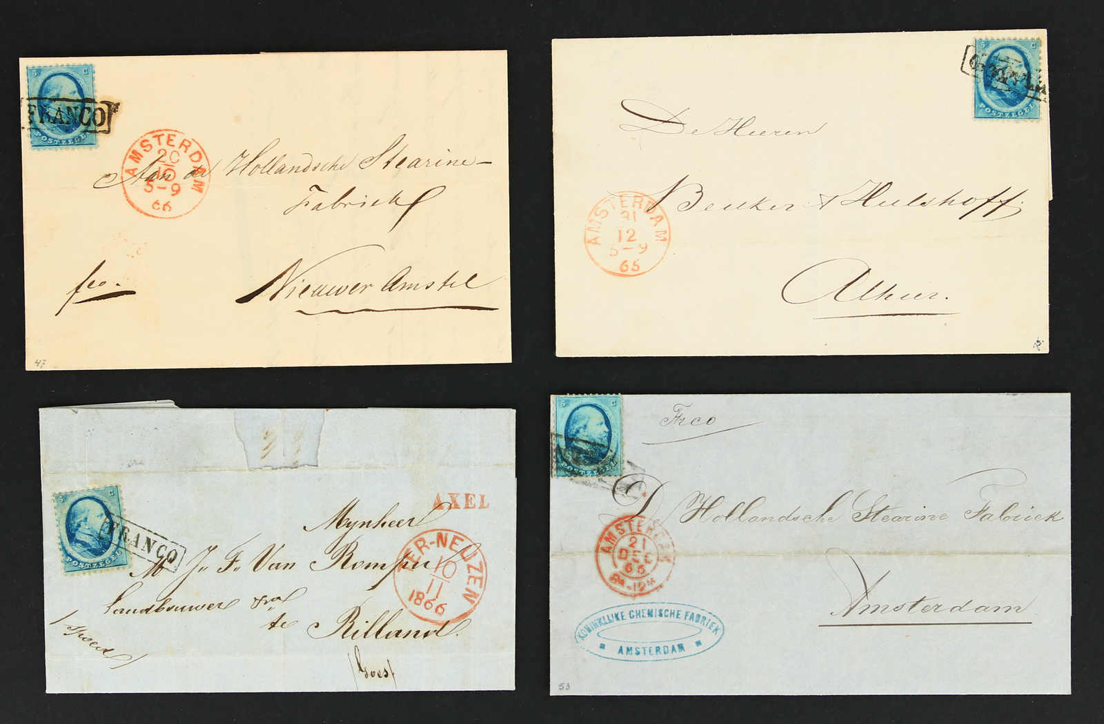1865/66, 4 Faltbriefhüllen mit EF 5 C., 3mal ab Amsterdam, einmal mit K1 "TER-NEUZEN" und L1 "AXEL", gute Qualität (Image) (imagea)